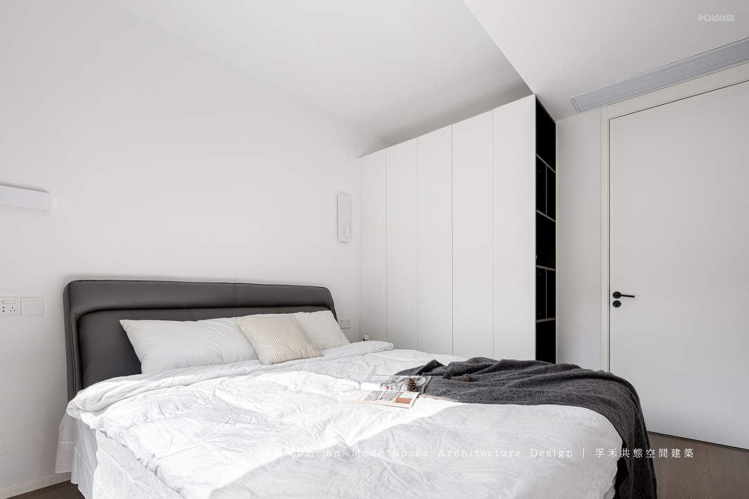 将主卧的墙体打开,将南边充足的采用引入到外卫,让光线在空间里穿梭,储藏柜取消常规的设置,增加空间的活动区域,让空间不再狭小