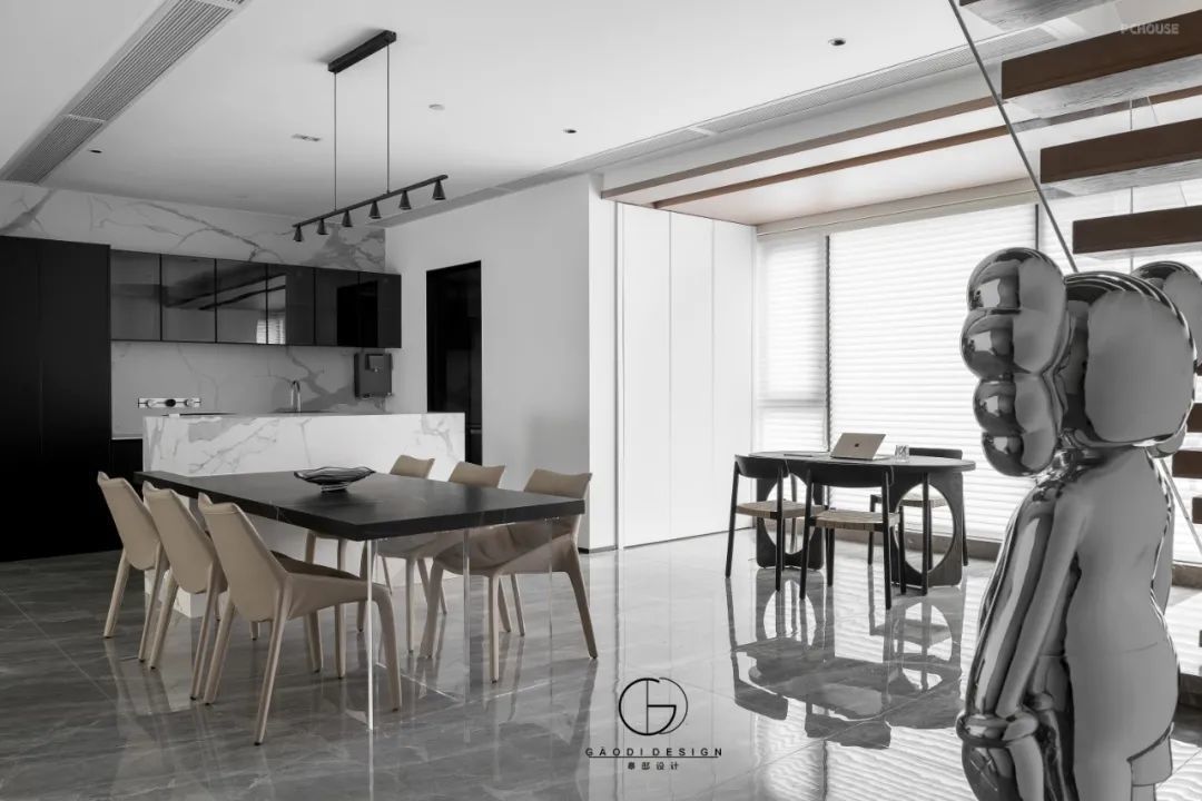 屋主是年轻小两口,虽说是两个人常住,不过屋主还是要保留3间卧室,偶尔父母来重庆住,还是需要留一间房出来。考虑未来有了小孩,也得留一间儿童房出来。屋主对设计很在意,很尊重设计师的想法,在满足了他们对住宅既舒适又好看及基本功能的需求,其它的设计方面,都按照设计师的想法来做,专业的人做专业的事。