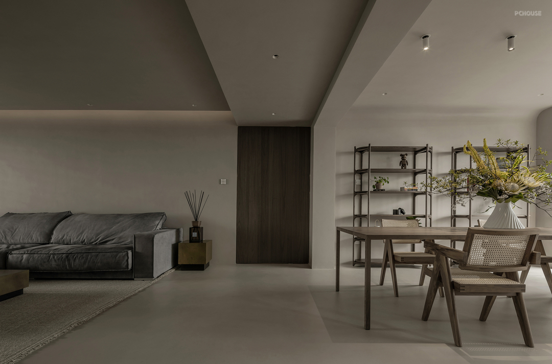 侘寂,对原始质朴充满欣赏与珍惜,不是极简,不是空无,而是一种独有的淡泊岁月感,在最朴实无华的境界里,赢得了超越时间的美。身处在充满侘寂感的空间中,会让人无端平静下来,意识向内,去领略静下来的空间之美及发现自我之美。本案是位于繁华的北京城,设计师以侘寂美学为出发点,运用以静制动、以空代满、以残为美的东方哲学,褪去城市及空间繁冗华丽的外壳,让空间回归至与人的内在共鸣。空间动线设计犹如导演对电影时间线的把握一样,着重视觉容量、合理铺排等,从进入空间的那瞬间起,设计师根据居住动线、家务动线不同功能空间作了极为细致的安排。