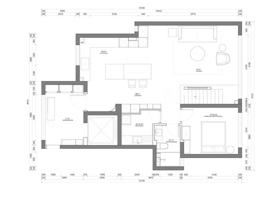在非大户型的空间里,我们希望通过这样一种简单的结构语言让室内格局兼具实用性和灵活性。