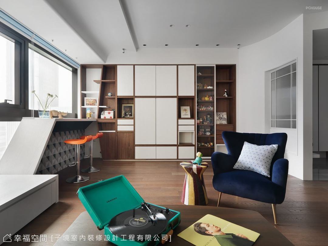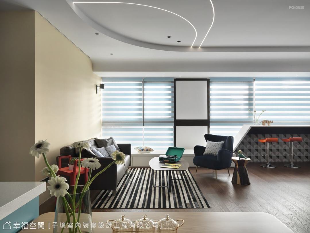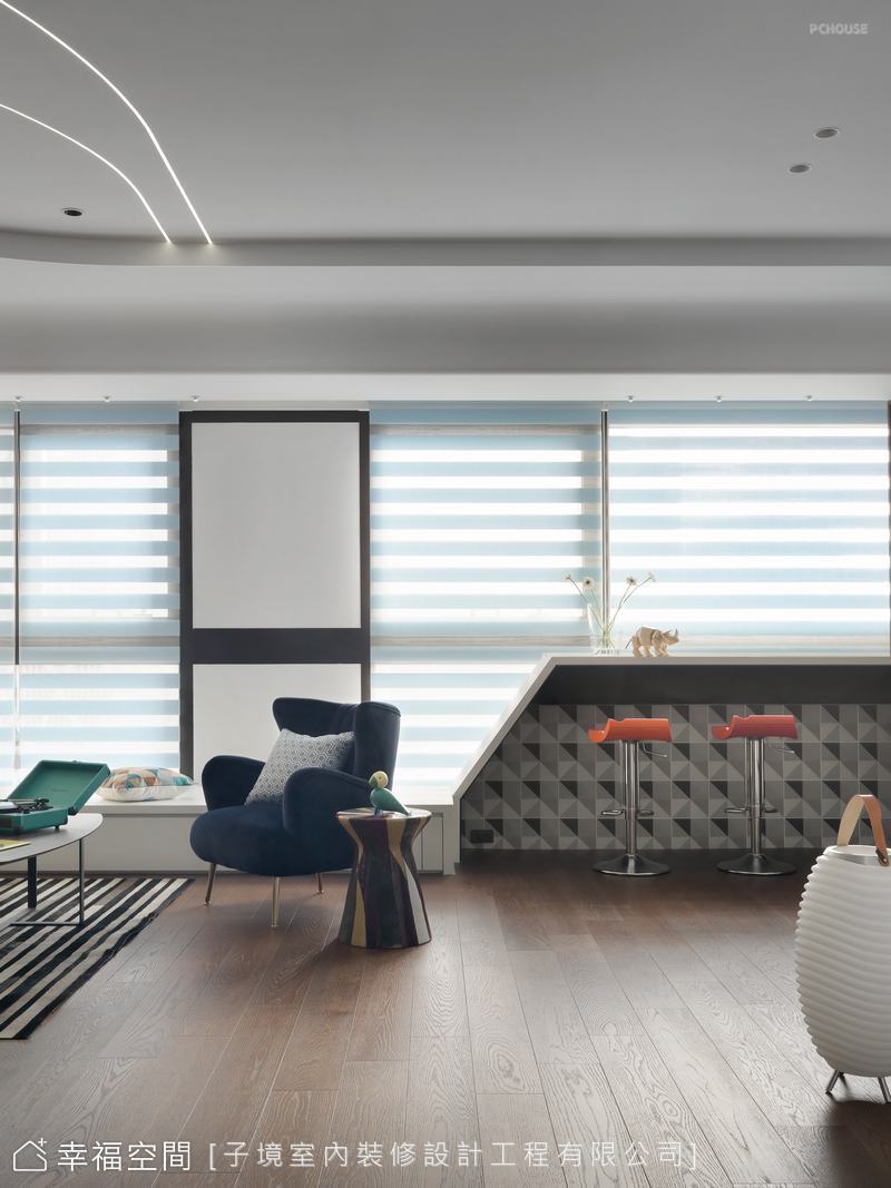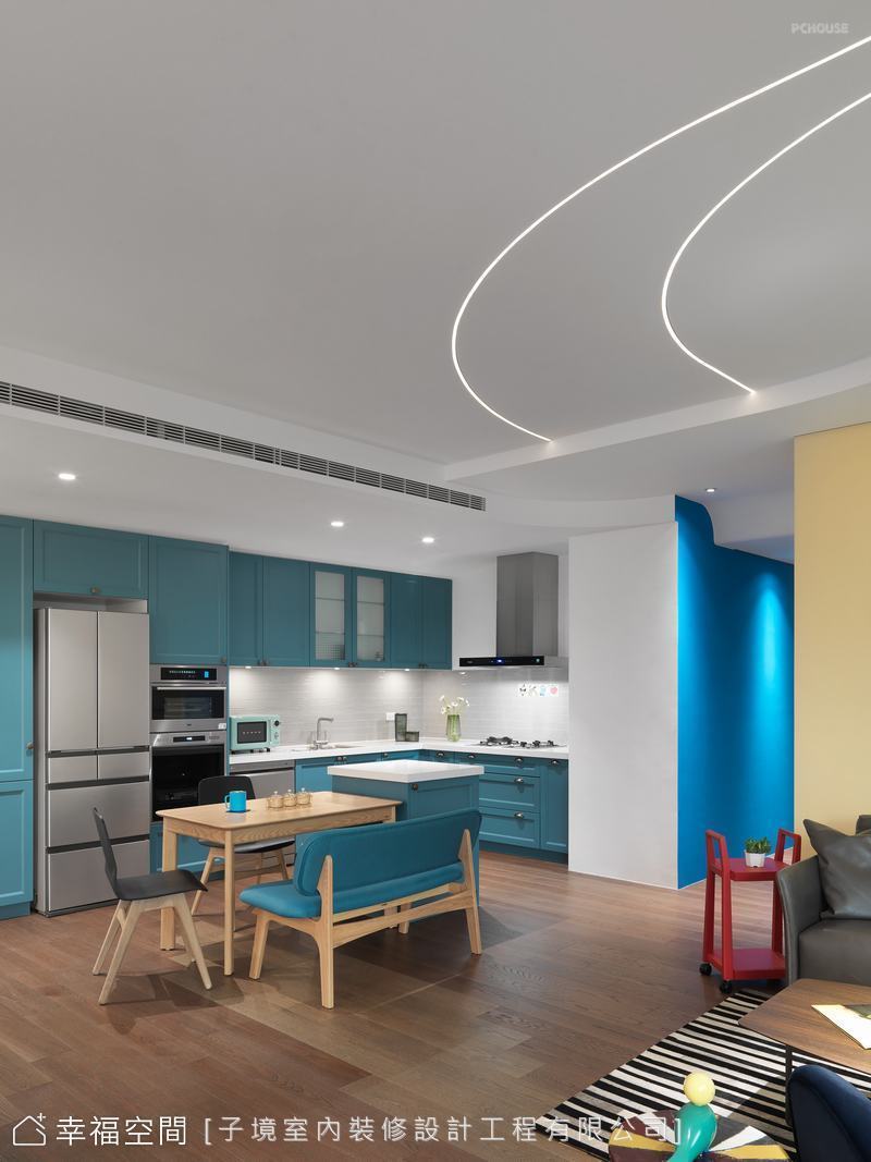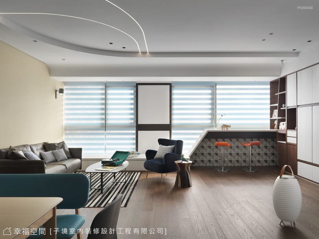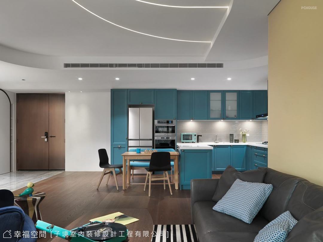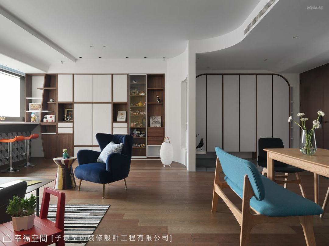 古振宏设计师细腻地将居者过去居所的空间色彩带入家中,交织黄色、蓝色墙面,搭佐白色和木质调,再植入红色、橘色椅子,赋予新居承启的意涵,因为生活的美好,在于延续生活的记忆轨迹,并添入新的生活故事。开放的空间规划,揉入圆弧的线条语汇,营造出流畅且自由的生活场域,让日光随性漫溢,居者也能惬意享受这种无拘的氛围。