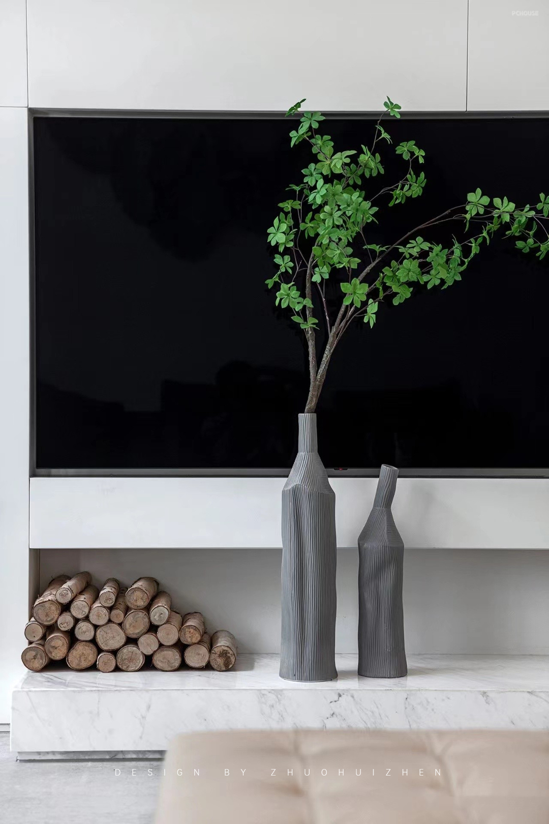 通过大面积留白,营造现代摩登意境,脱掉现代豪宅“华丽”的厚外套,让翠绿的绿植作为点缀穿插其间,奠定典雅和高级的生活基调,意在强调回归生活本身的返璞归真之意。