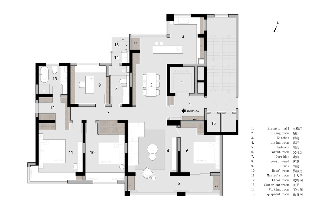 设计中力求精简,减少不必要的装饰造型,以极简的块面和线条关系构筑室内空间。