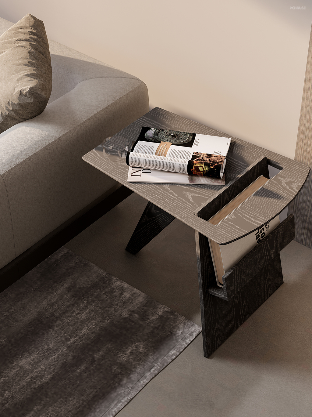 沙发侧面看似随手放置的小桌,以不同寻常的形状线条,打破方方正正的格局视野,便于收纳书籍期刊的设计,为客厅增添一丝“文艺范儿”。