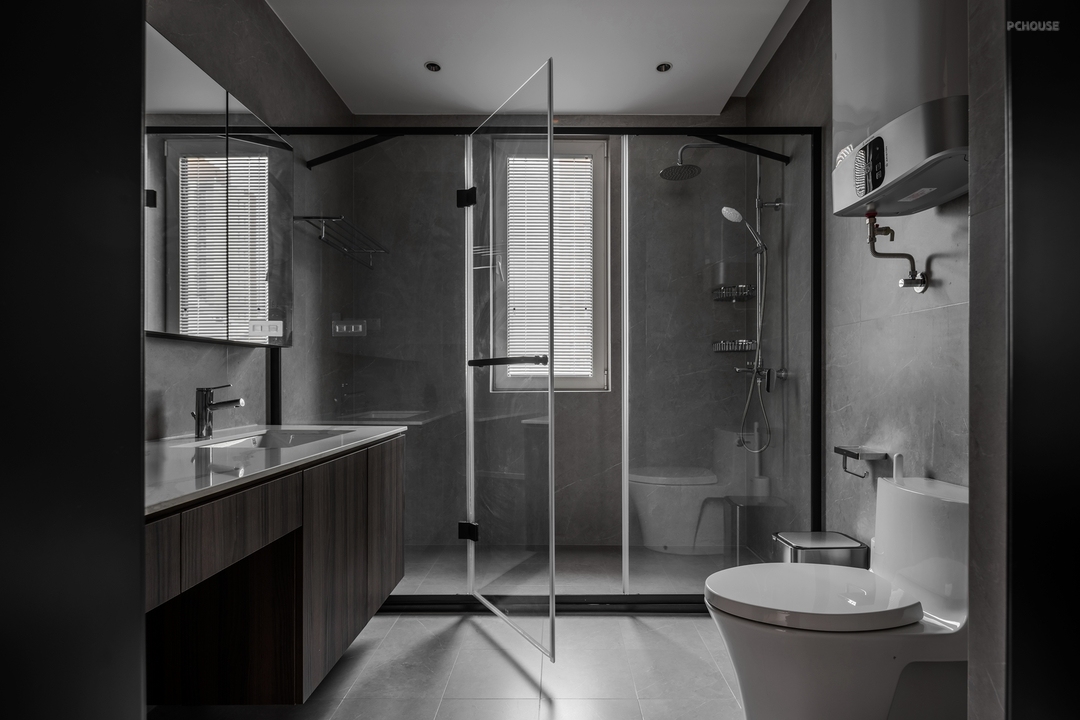 无论在色调或形态上,卫浴都与整体的建筑形成了高度的统一。简洁现代的硬装风格,邂逅一以贯之的木纹元素,功能区的转折自然而顺畅,兼具实用性和灵活性,生活的肌理感呼之欲出。