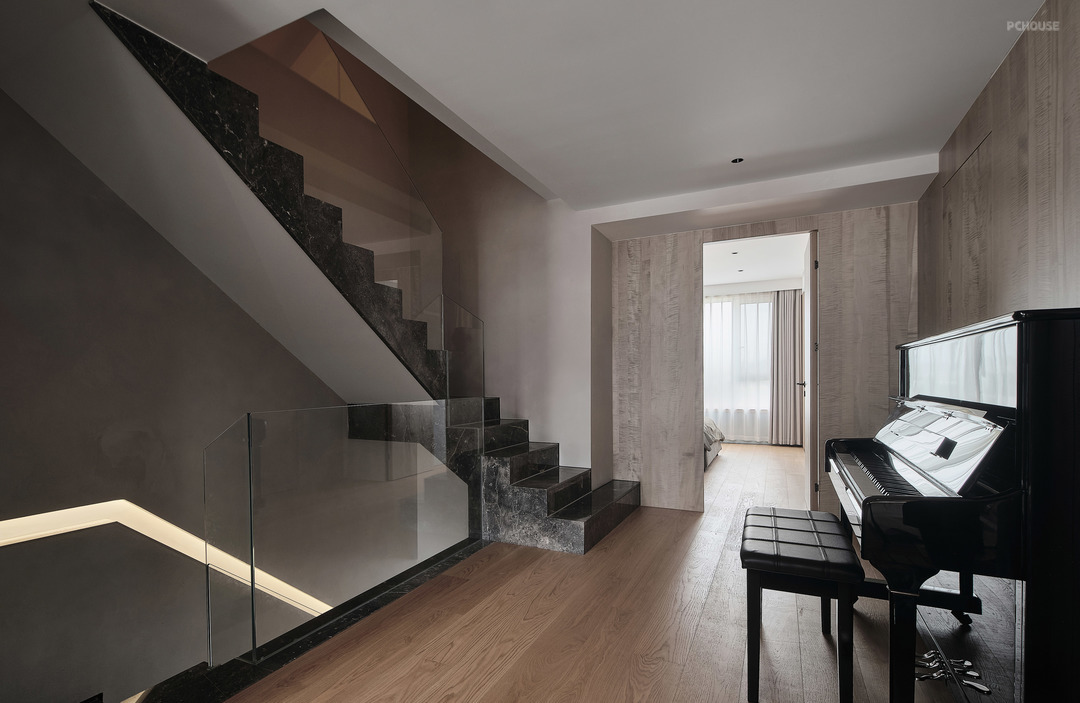 钢琴置于楼层间的转场空间,弹奏一曲,余音袅袅,绕梁三日。