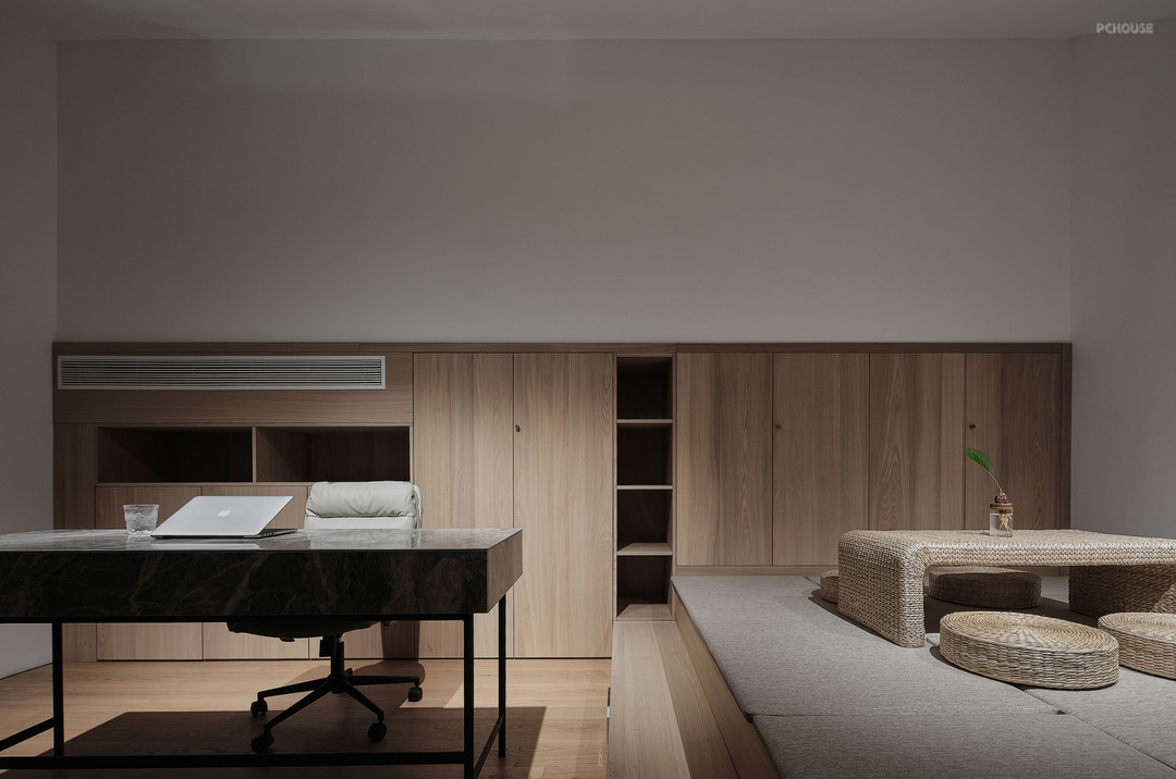 阴暗交织的光影,细腻柔和的色调,透漏着自然气息的影木,每一寸细节的分寸,保证了空间的氛围,把整个空间的环境营造的“心平气和”。