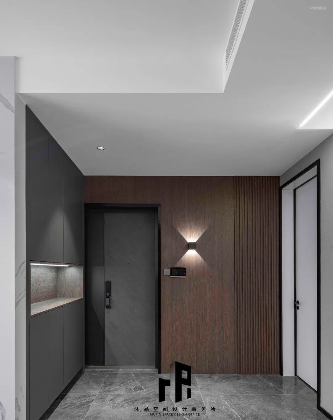 ②主卧拆除部分墙体,将柜子与墙体做整体衔接,优化公共空间洄游动线,让居住者能够在家中自由互动交流。
