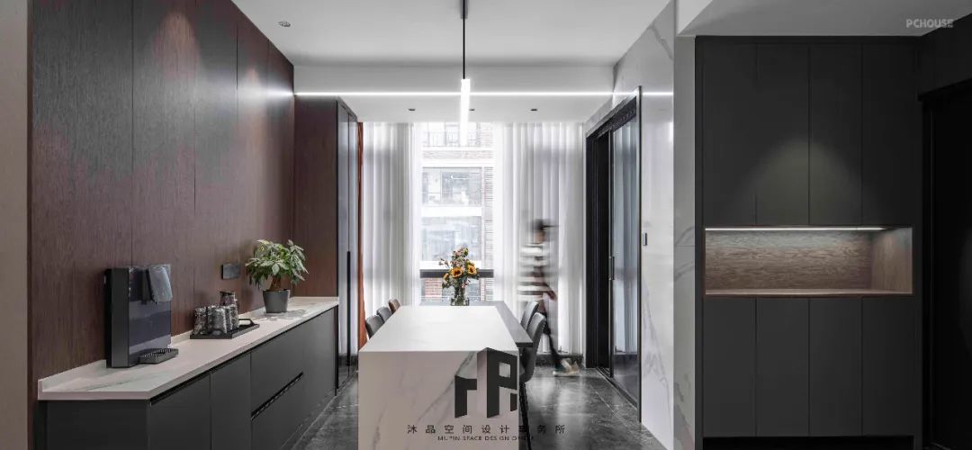 因此设计师重新疏导了空间关系,优化了生活动线,将自然的木质元素与现代感相结合,通过不同材质的变化打造出空间的层次。