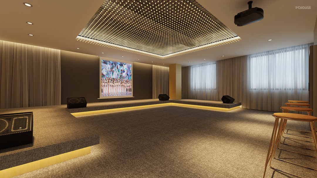 The elevator goes up to the 5th floor and enters a bright business hall, which can be used for business reception, company conference roadshow and other commercial gatherings or product release places. The concise hall is equipped with bar counter, projection and audio equipment.