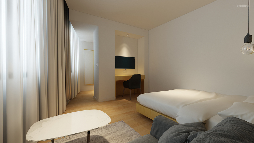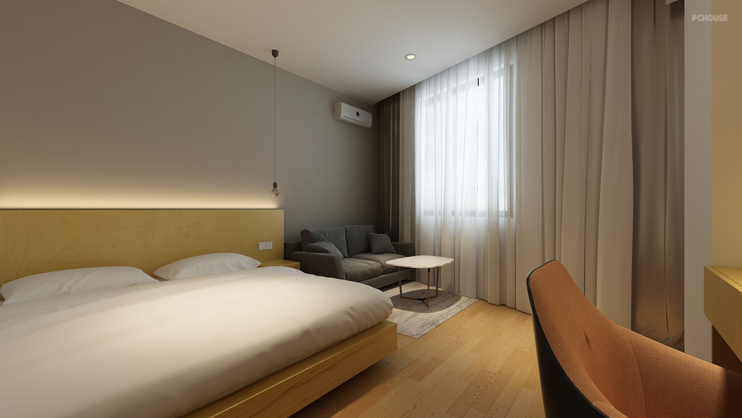The design of this case is based on the design concept of "light living" principle and modern minimalism. Light decoration focuses on the user's experience, and pays attention to the space interface and decorative composition. Through the strong collision between rough bricks, concrete and delicate and warm wood products, a clean, quiet and comfortable hotel space is created.