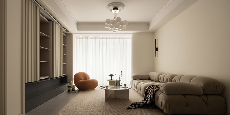 Ceci的卧室从一个舒适的起居室开始,拆除所有隔墙,设计师为她规划了这间由休息区、起居室、衣帽间、卫浴空间4个部分组成的专属空间。