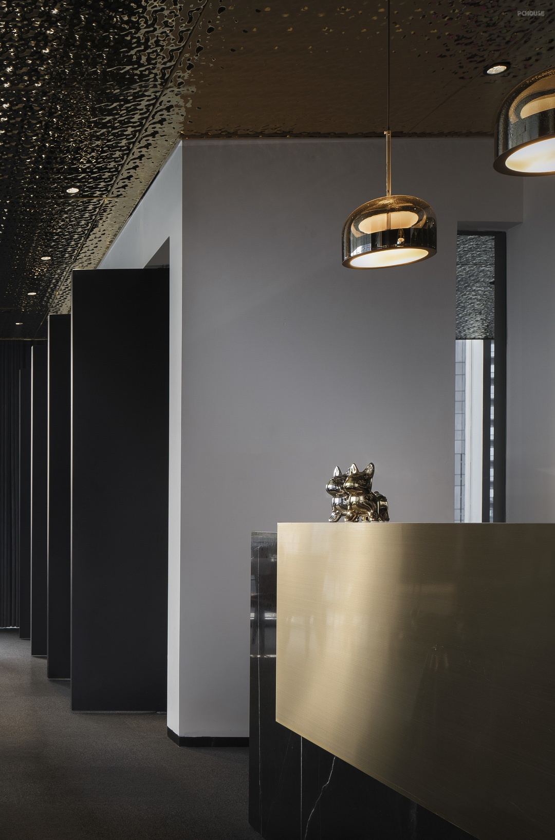 大理石,温润有质感、金属,单薄有温度,二者融合,时尚感十足,让整个前台区带来引人入胜的效果。
