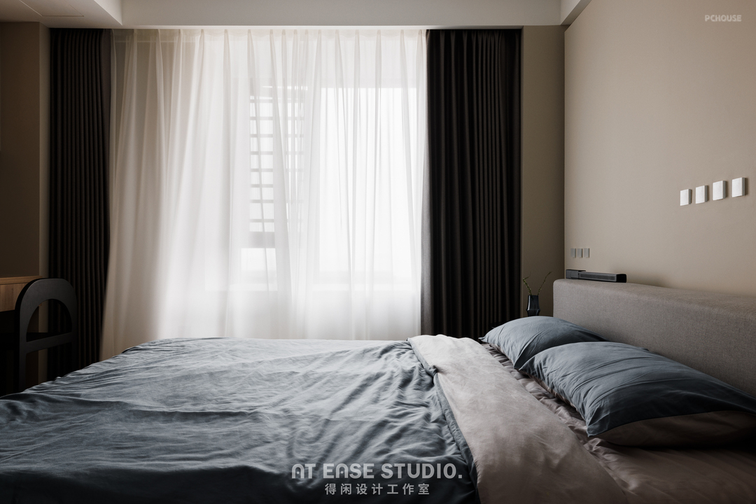 奶油色系搭配蓝色的床品,反倒让空间显得格外静谧,反应出奶油色真的是一个包容性极强的一个色系