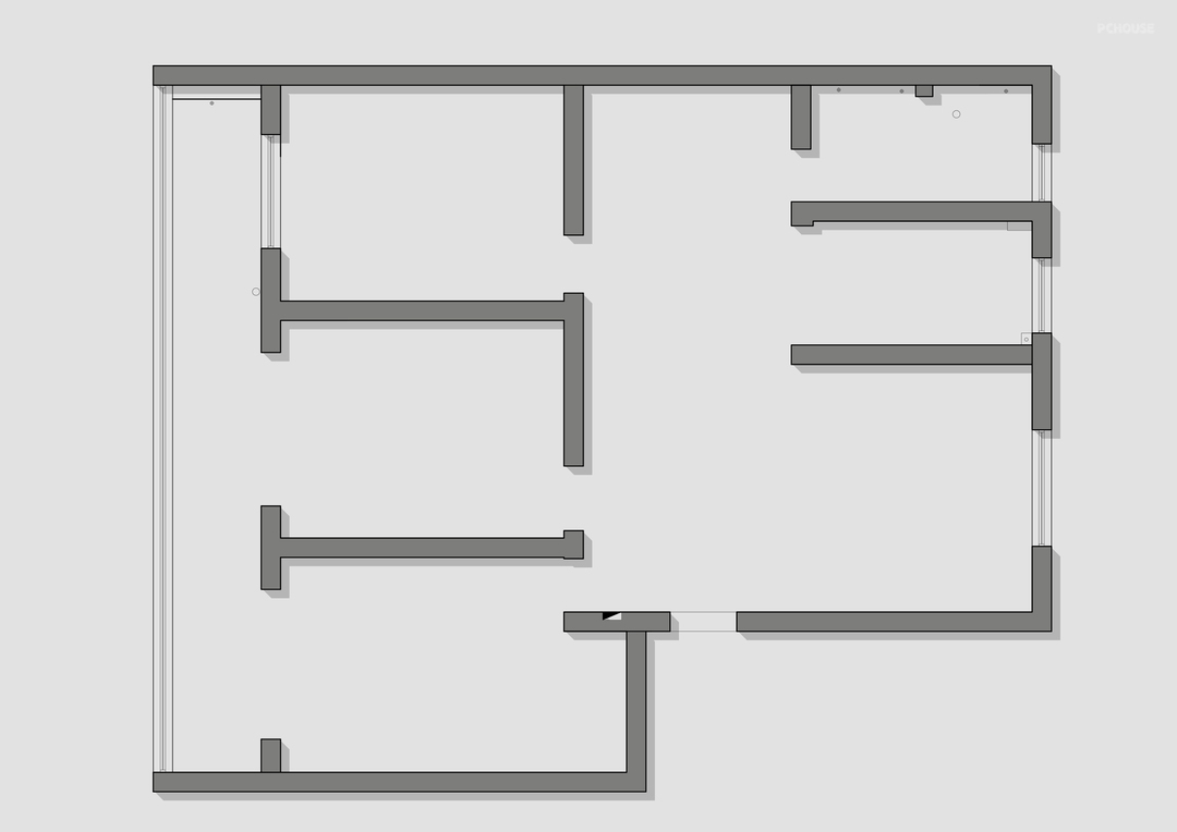 2:位于北侧的客厅采光受限,与之相连接的过道占用了公共空间大半的面积,而且有一半空间处于暗面,利用率低。