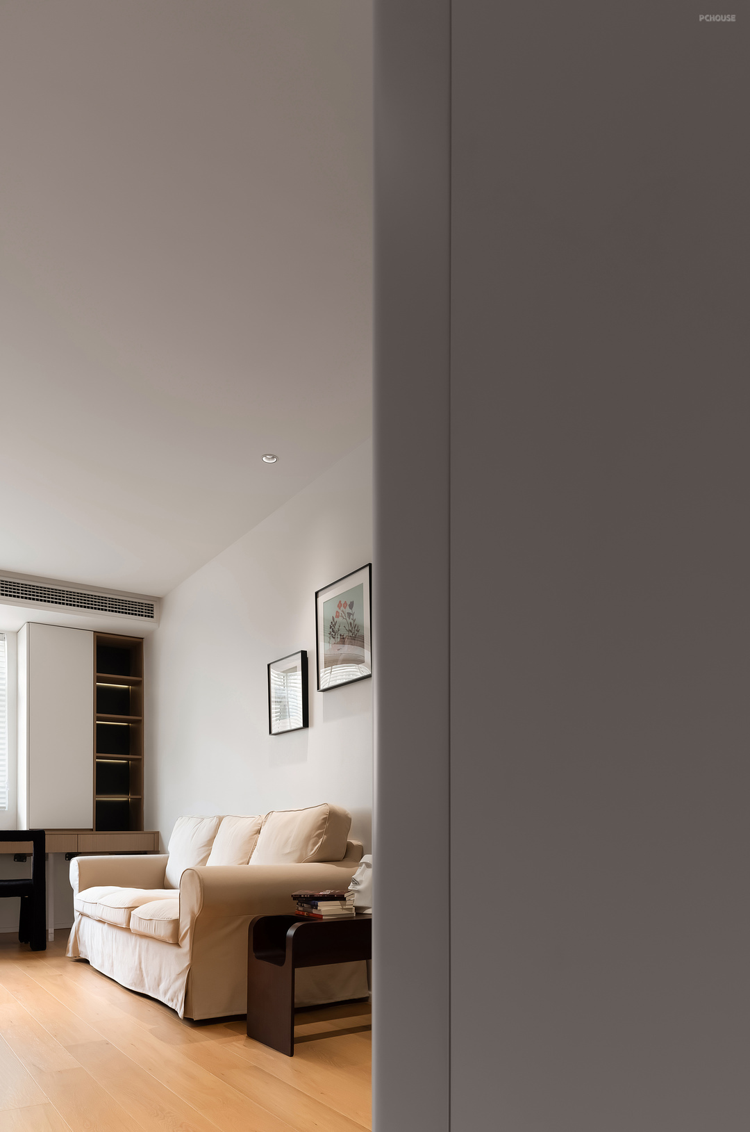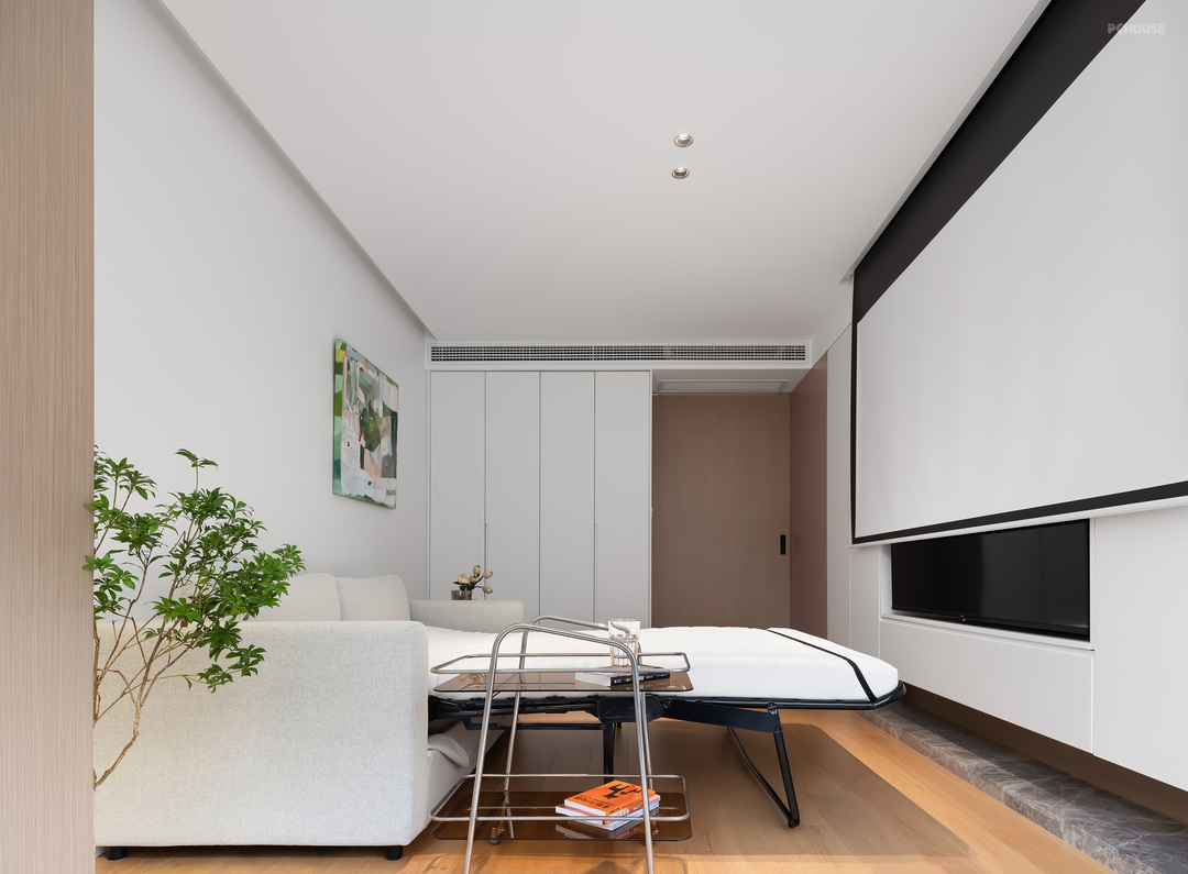 当移门关闭,投影打开时,这个空间又可以作为客房或者影音娱乐区。多功能场景的切换让整个空间变得丰富有趣,满足了居家所有的想像,哈哈