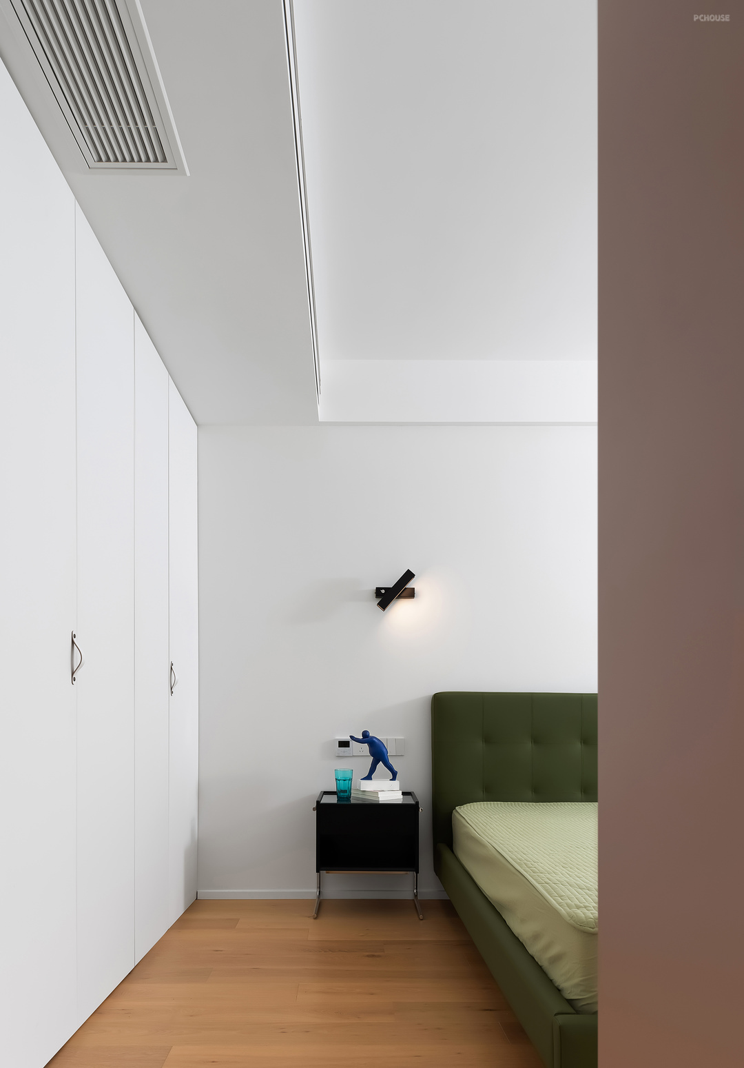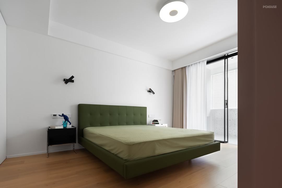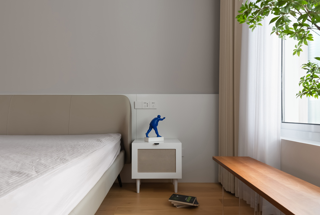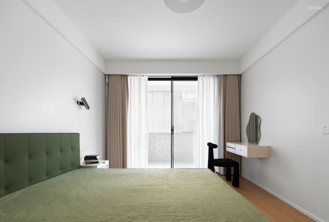 卧室并没有使用华丽的元素,白色的墙面越简洁越耐看,就像内心的笃定和富足。
