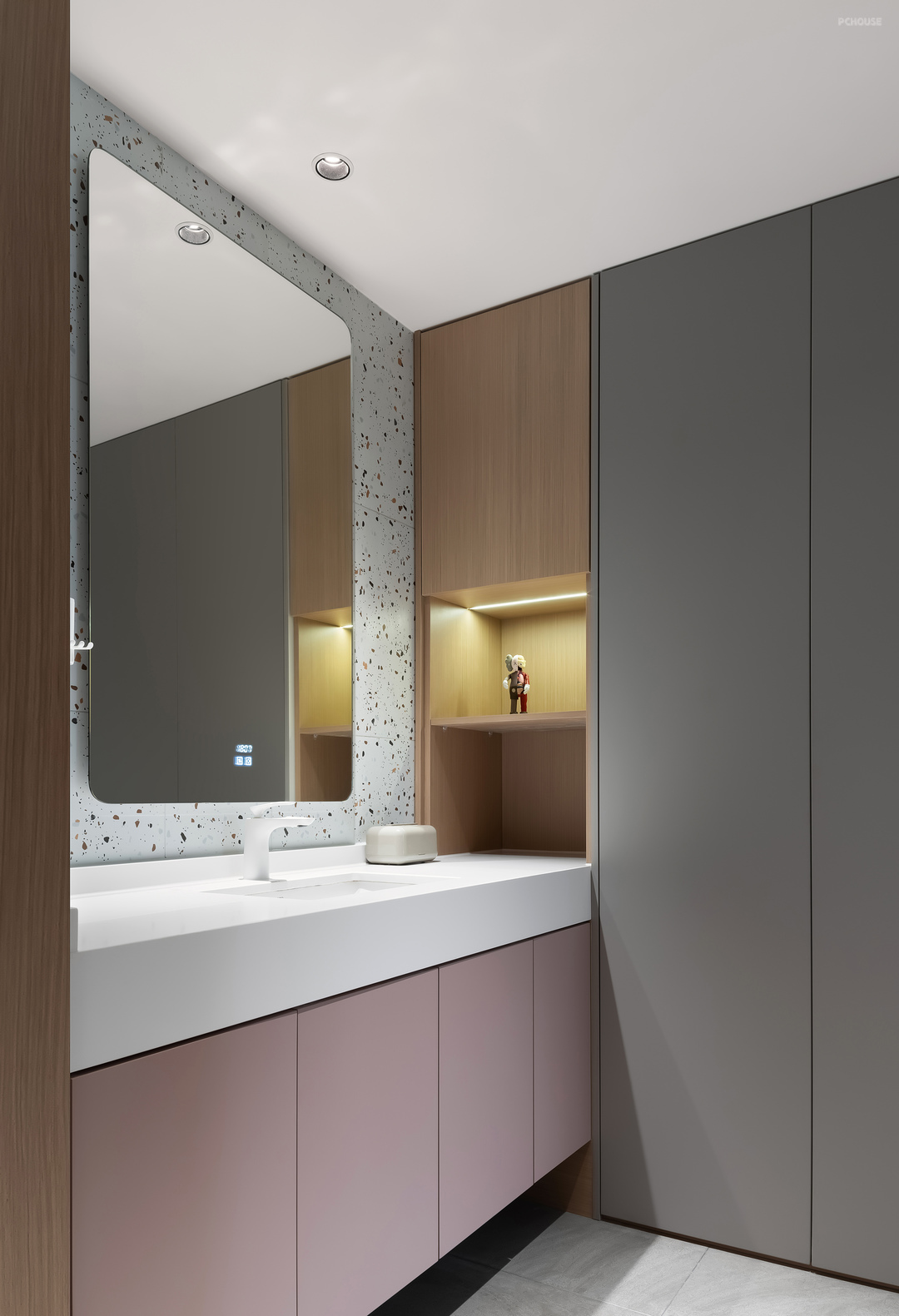 水磨石砖与地砖相配,继续沿用屋主喜爱的灰粉搭配。