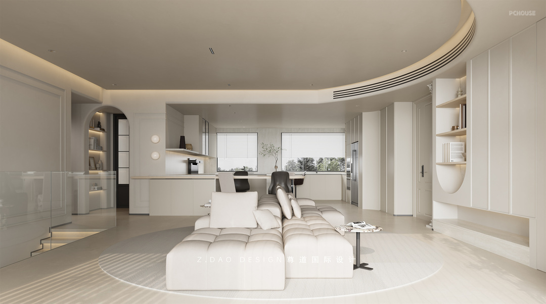 整体以奶油色米色基调为主调,旨在打造安宁、静谧的空间氛围。