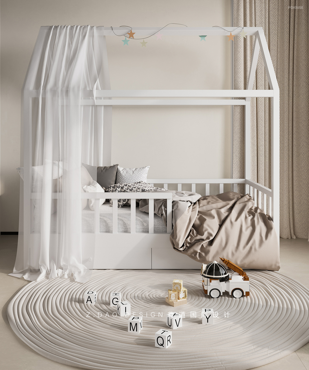 2、北边儿童房空间略小,用雪糕床既可以增加童趣,又能满足日常生活需求;