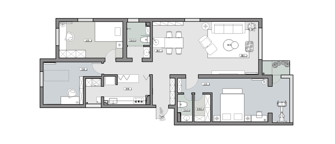 4.主卧室保留卫生间的基础上,又增加衣帽间功能。