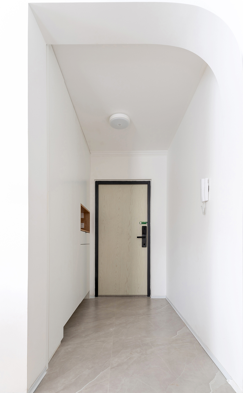 半弧造型的玄关垭口,通过圆弧处理在开门的瞬间,让空间变得更加柔和,一定程度上起到分区的作用。