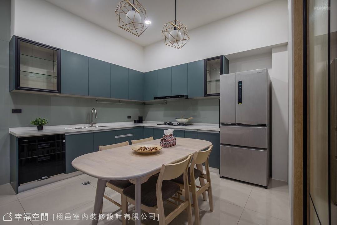 公领域的温润氛围中,选择轻透的玻璃拉门区隔客餐厅空间,拥有不一样的个性表现,同时保有视觉穿透,连结空间的互动性。