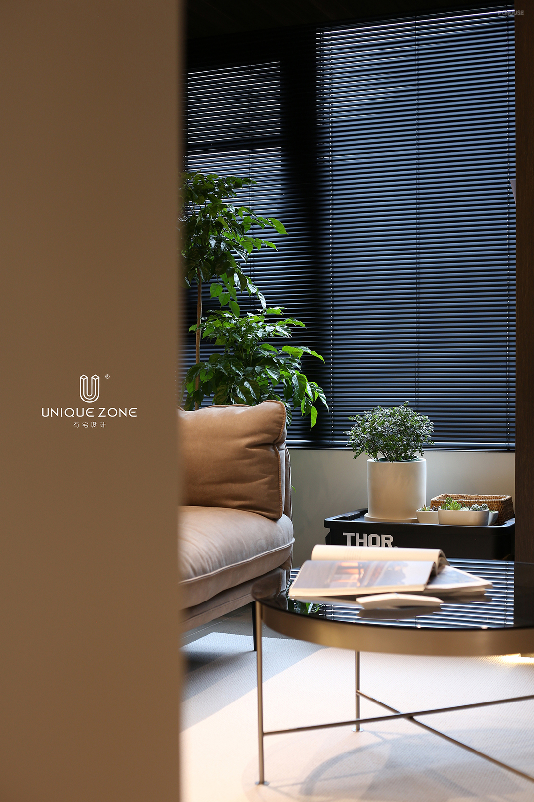 深色空间带给人沉稳的包裹感,一个人,在家闲弄花草,阅读品酒,惬意自在。