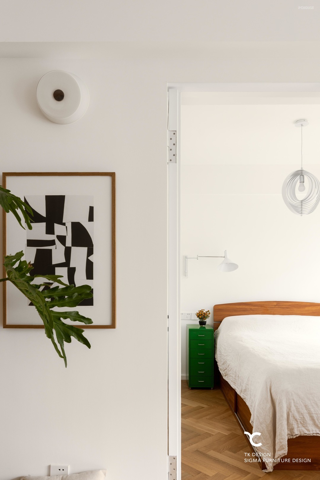 通铺的人字拼木地板,让整个空间更开阔显大。
