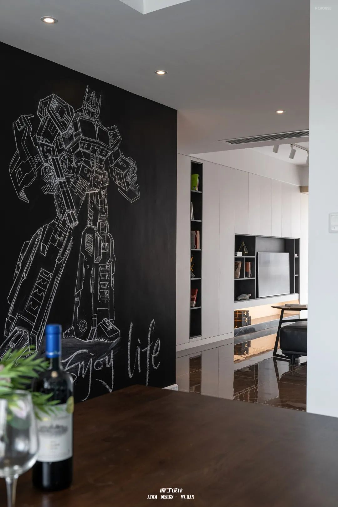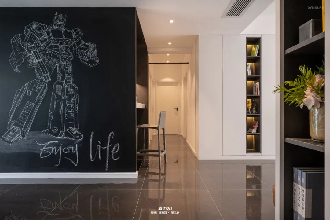 黑板墙满足未来小孩涂画需求,也可写上每日菜谱和日常安排计划,将幸福的小家过得有滋味且有条理。