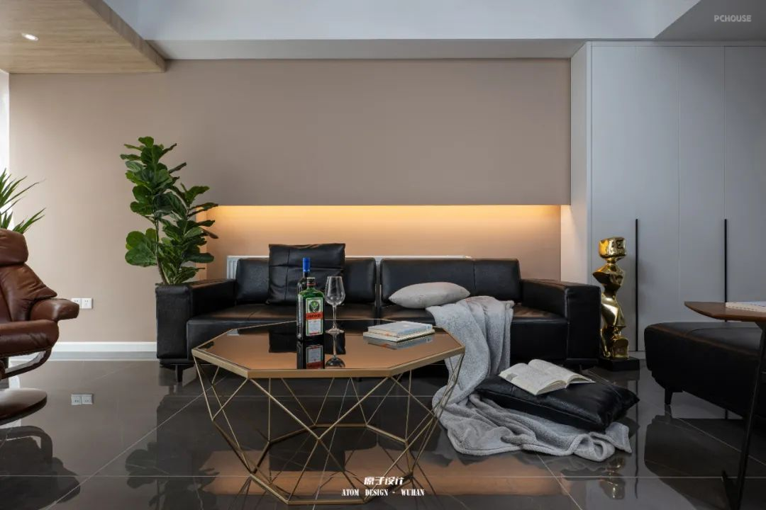 单纯黑白灰颜色搭配难免单调,但是加上绿植、原木色、咖啡色和少许金属色,就让整体感受素雅又不失生活的温馨感。
