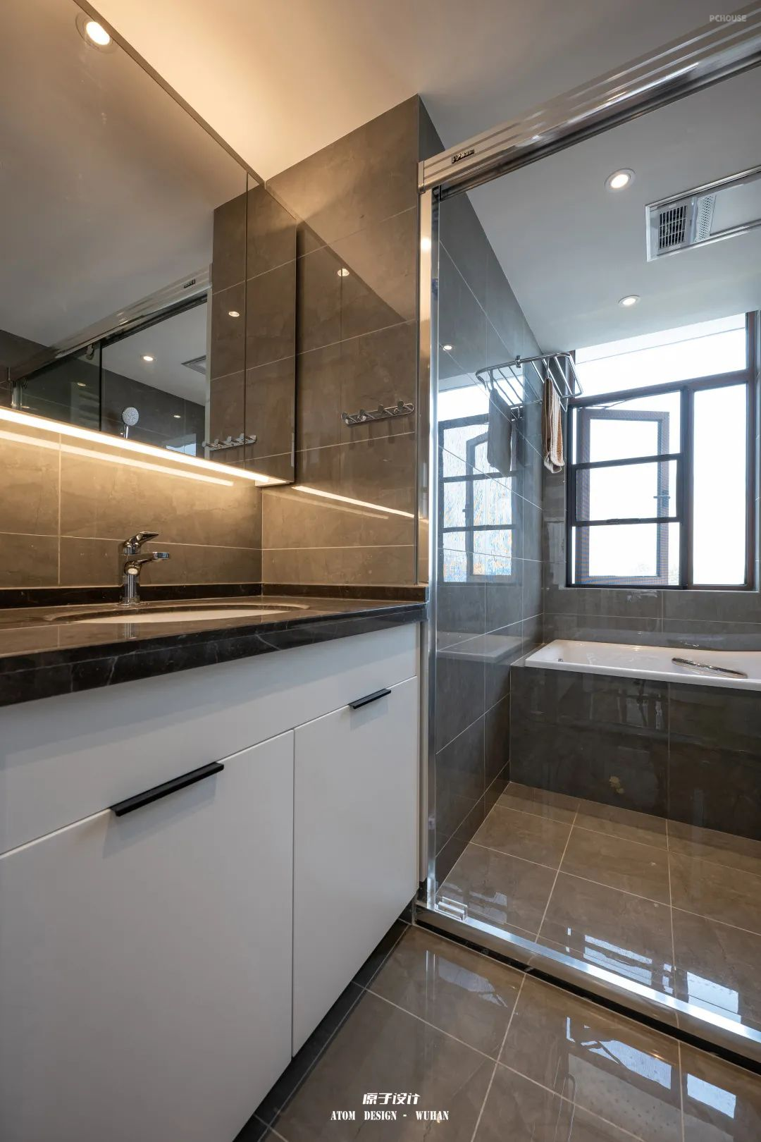 进入主卫,我们设计了推拉门,节省空间同时展示简洁与灵活性。