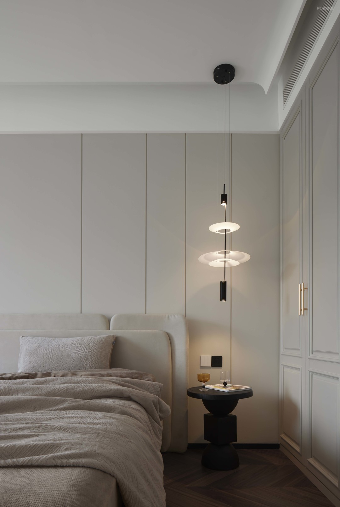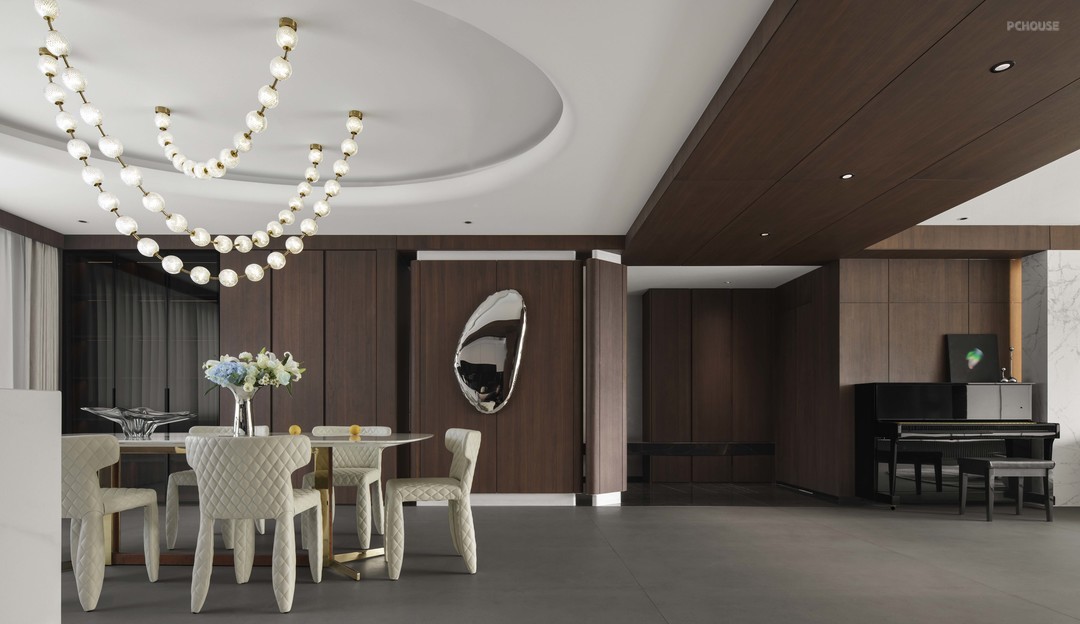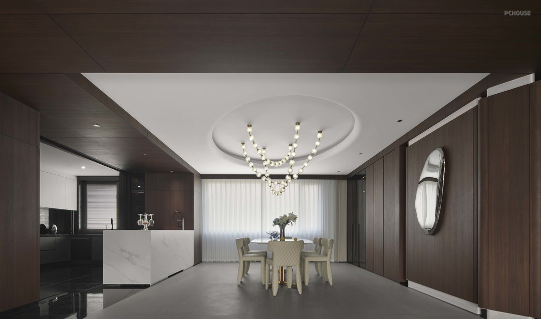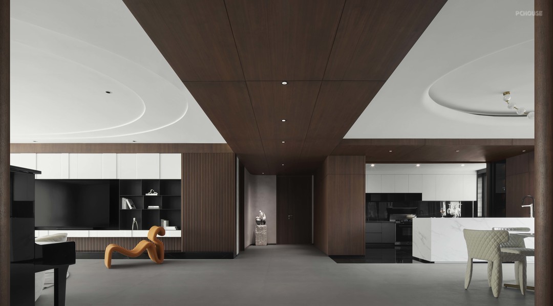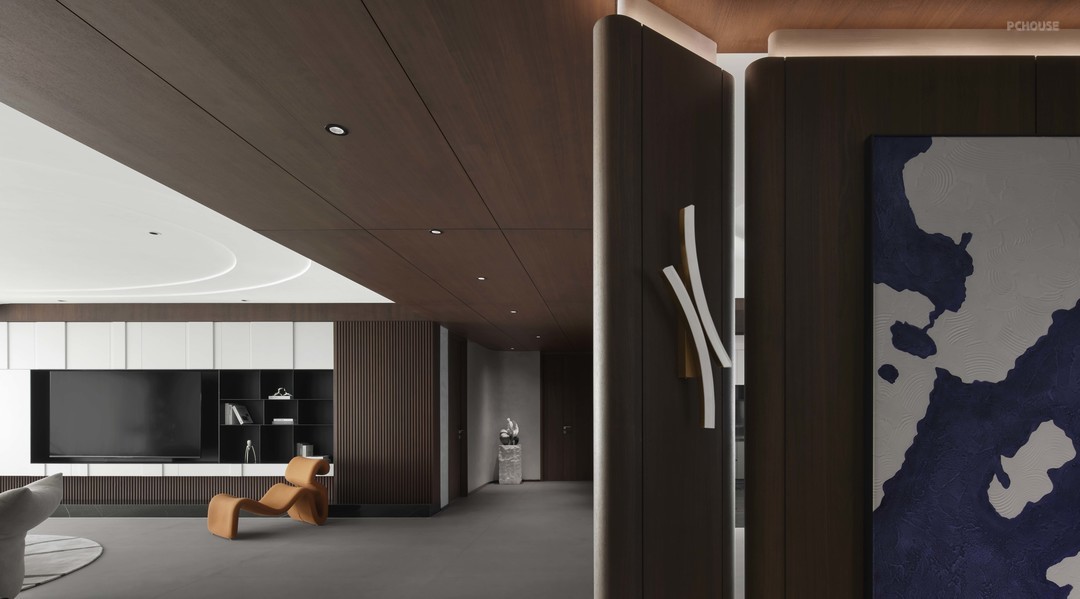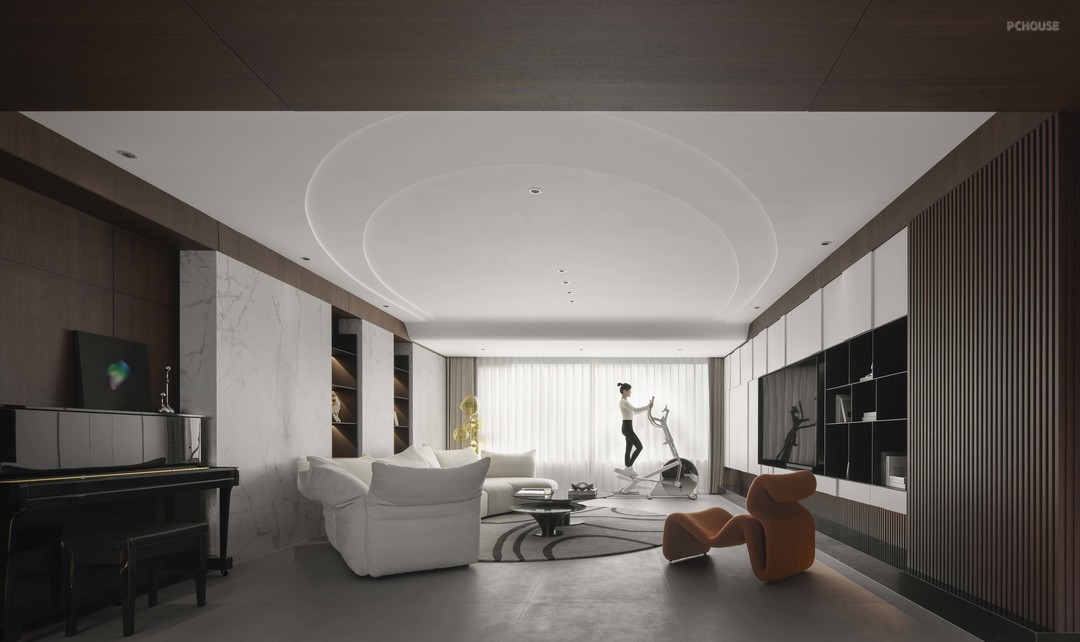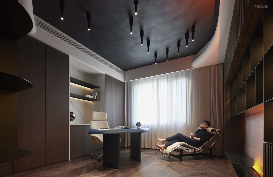 夜晚,几盏型材轨道灯光烘托出温馨的家庭氛围