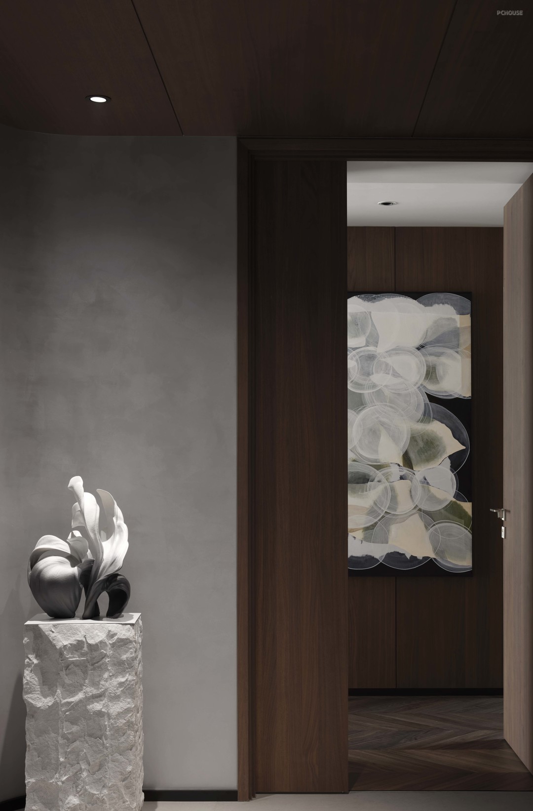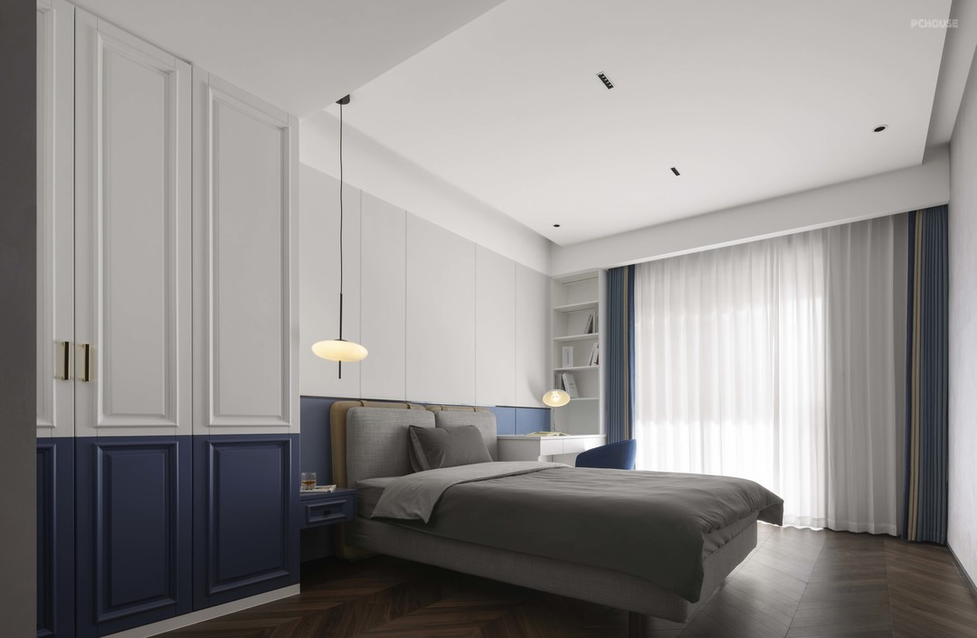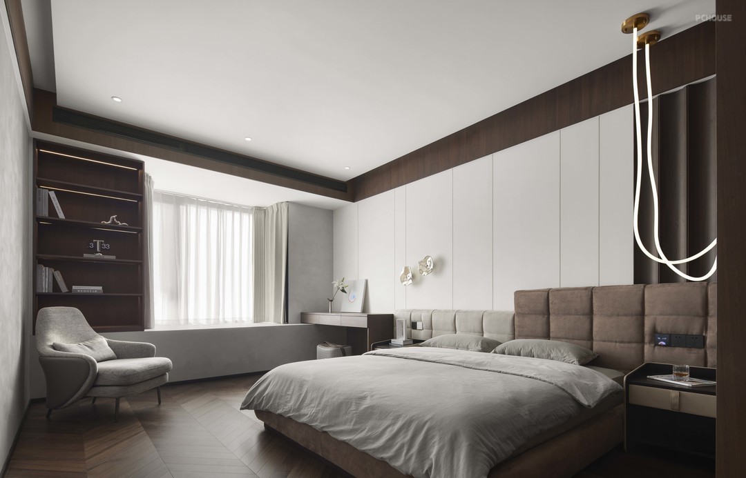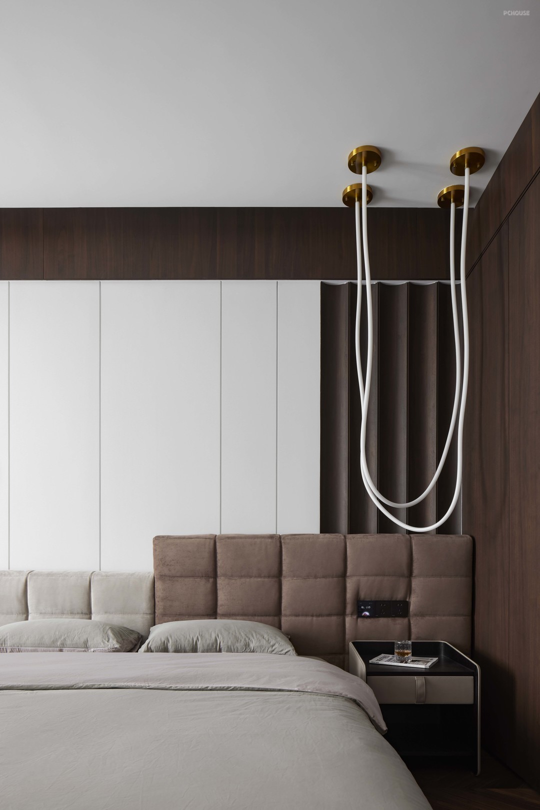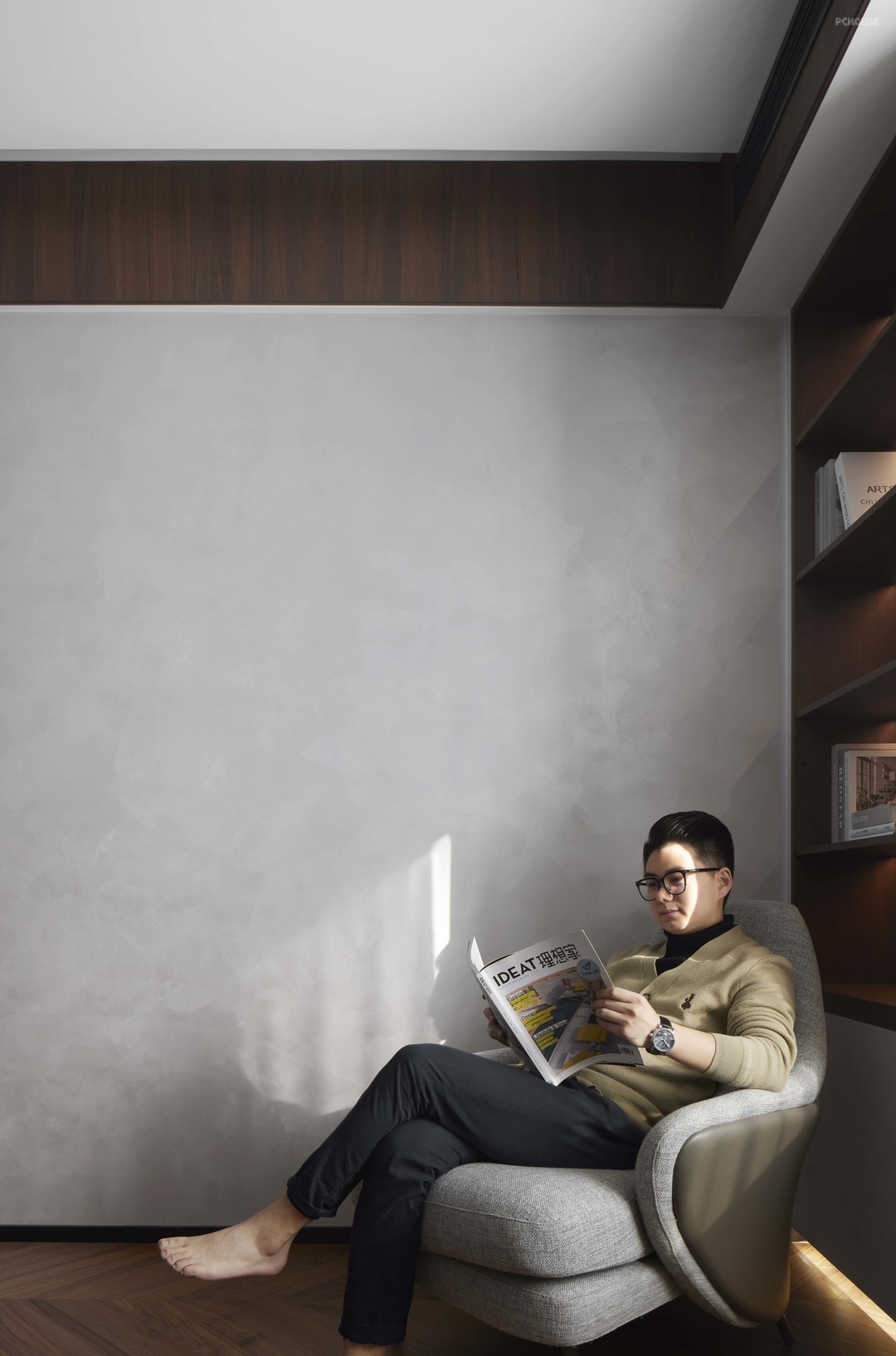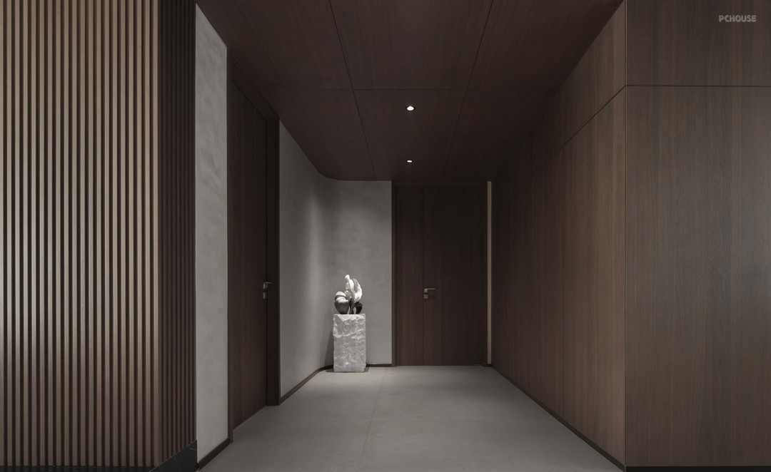 夜晚,几盏型材轨道灯光烘托出温馨的家庭氛围