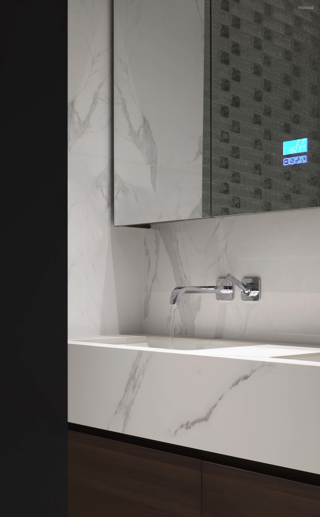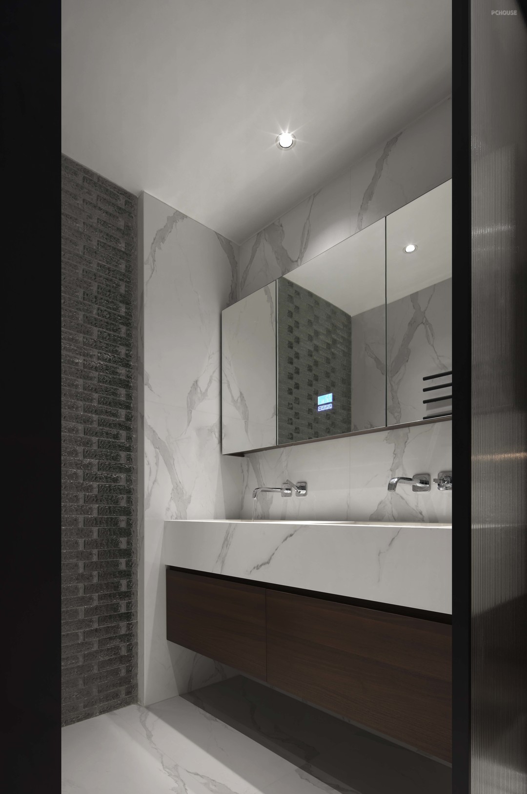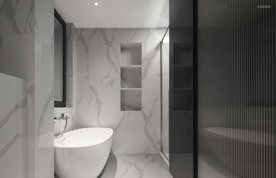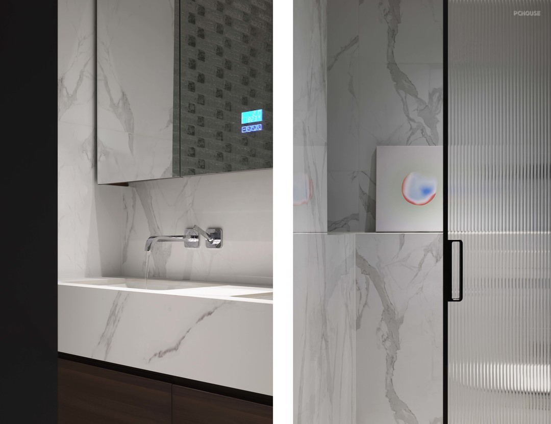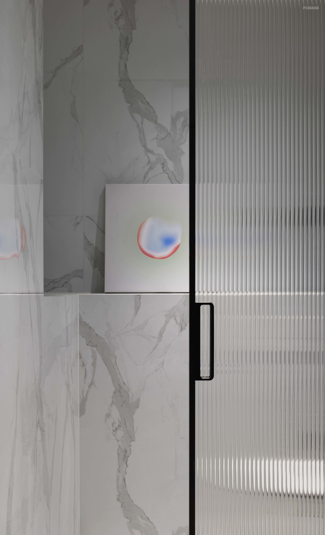 不仅厨房门设计成隐藏窄边框玻璃推拉,减弱空间界限感