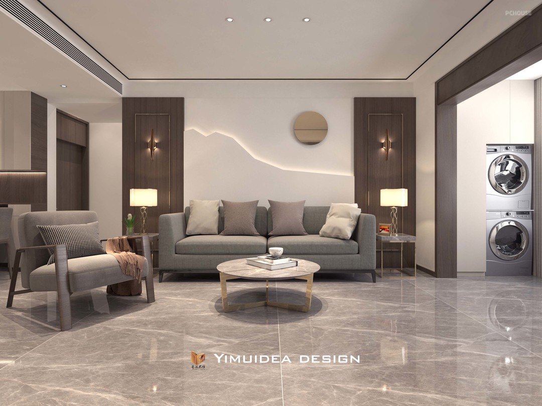 整套方案的设计风格为新中式轻奢,整屋采用中央空调以及地暖。三个卧室采用木地板,与客厅、餐厅的风格区别开。客厅、餐厅区域采用浅灰色大理石地砖,增加整体空间的高级感。拆除不合理的墙体,开阔视野、改善整体的光线,并完善储存空间不足的问题。增加部分墙体,让部分空间拥有更好的私密性。公共区域整体色调多用白灰棕三色,用少量金属色加以点缀,使空间更具清冷感和高级感。家具多以布艺的棉麻为主,使整个空间在清冷高级的同时又不失亲和力。全屋的照明设计师摒弃了常规的吸顶灯以及大吊灯,基本以隐藏在天花板上的照明灯,以及隐藏在柜子等处的灯带为主,添加少量的落地灯和小吊灯,不破坏空间内设计整体性的同时增加氛围感。