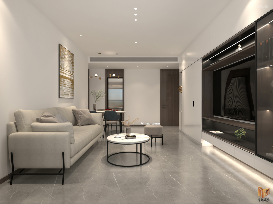 客厅以白灰为基调,整体空间线条干净利落,体现出现代简约生活的品质