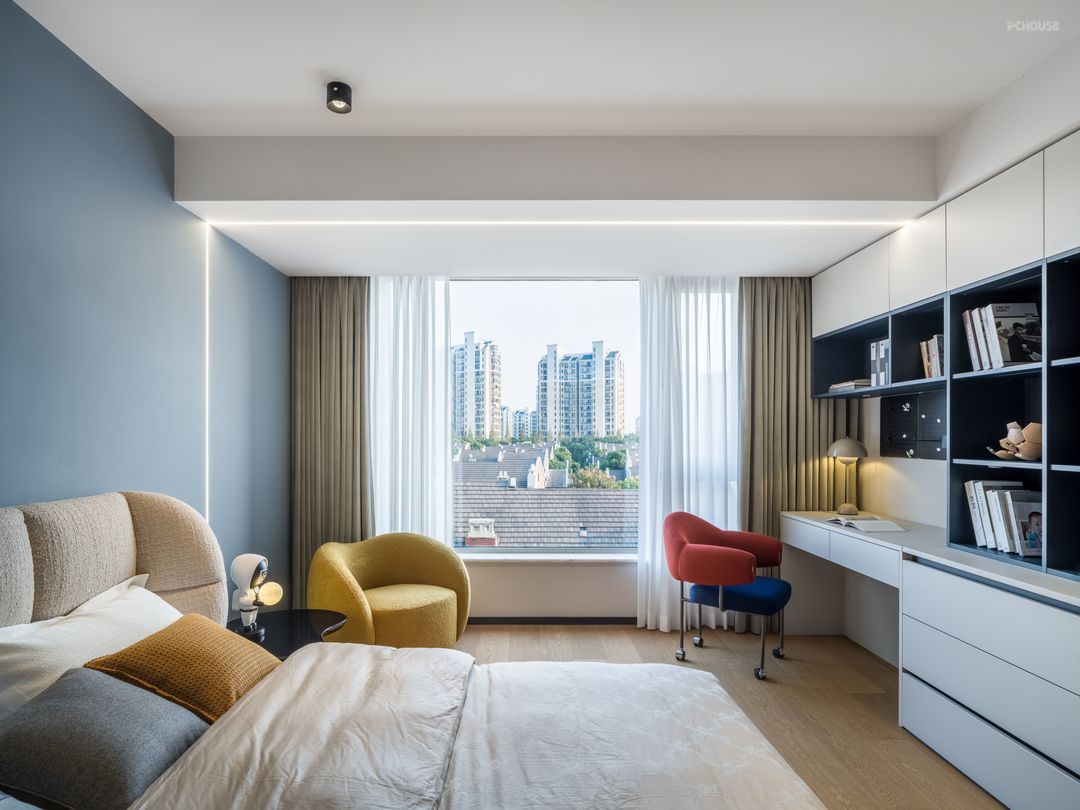 二楼朝南是老人和孩子的空间,儿子房间给了他足够的活动和学习的空间,将一把收藏的90年的芬兰产的Inno办公椅给了他,这个椅子细节堪称完美,舒适度和趣味性并存,惊叹那个年代北欧匠人的工艺水平。在这个家里最适合使用这个椅子的也就是这个房间的小主人了。
