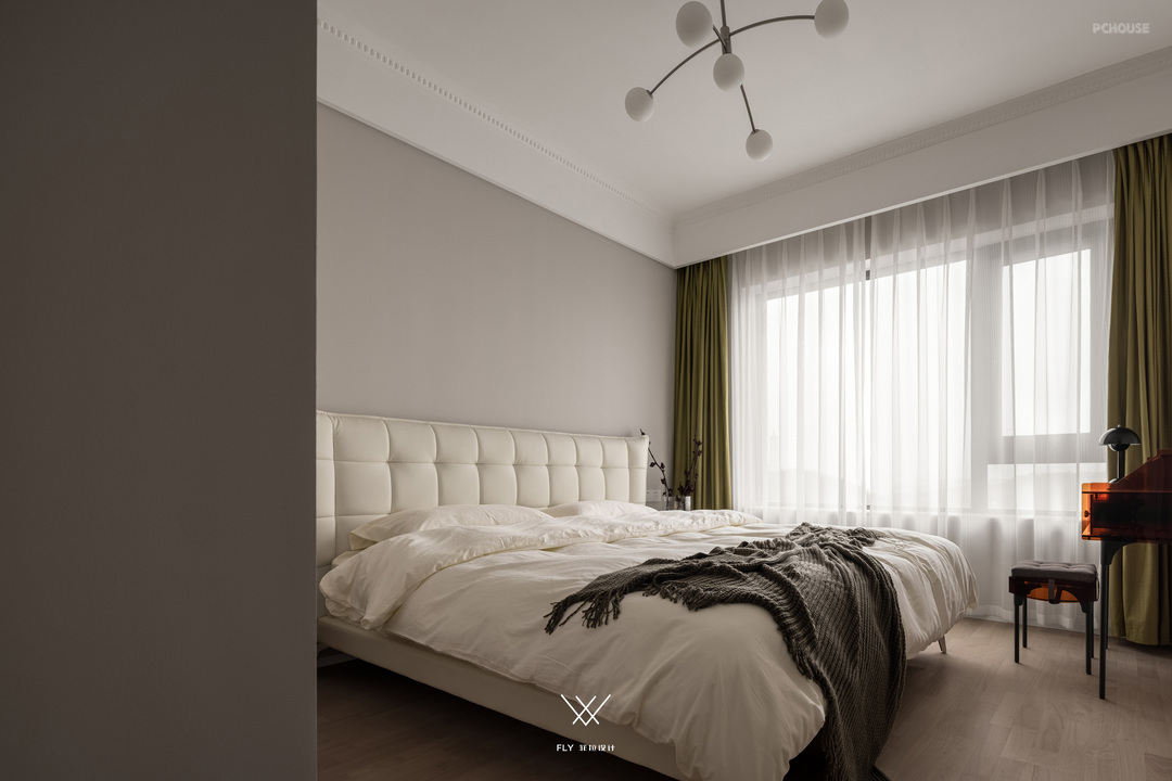 原来主卧的面积比较小,我们把阳台包进来之后,主卧的空间才算是有一个比较舒适的状态,一张宽敞舒适的床、床头柜的空间、一整面衣柜的空间都得到了妥善的安排。