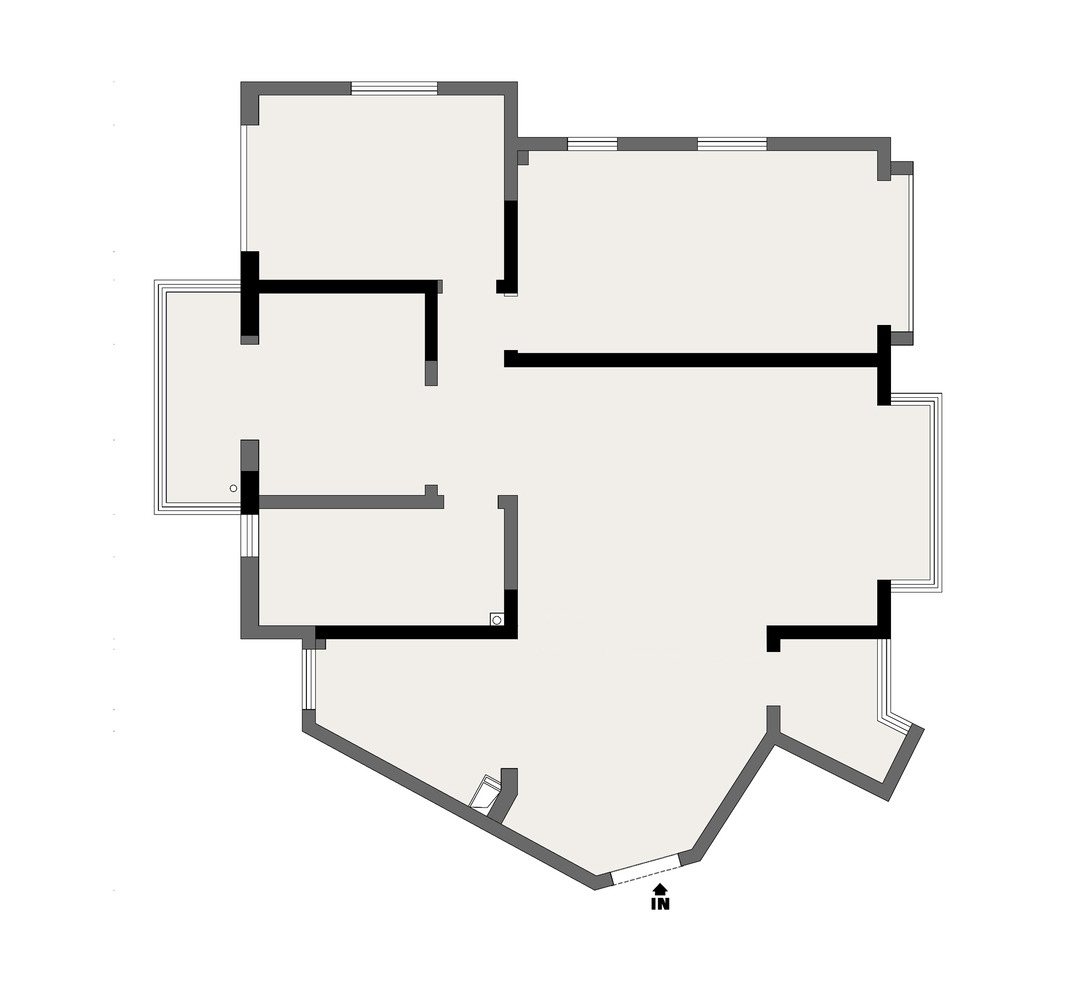 原阳台区域:加深阳台进深,局部抬高,以木盒的形式套入室内,以新构筑结构形成一个单独的休闲区。