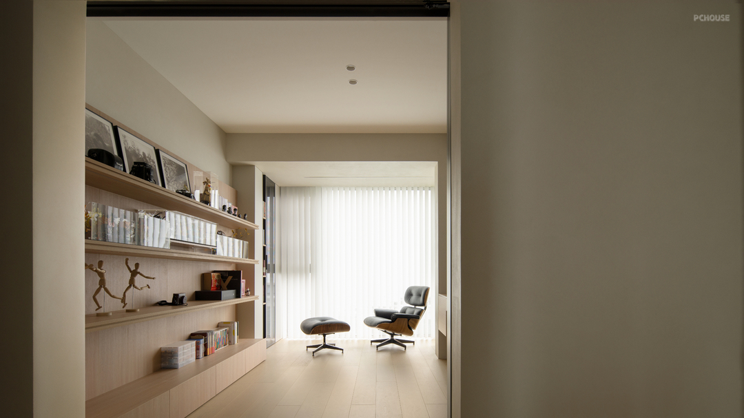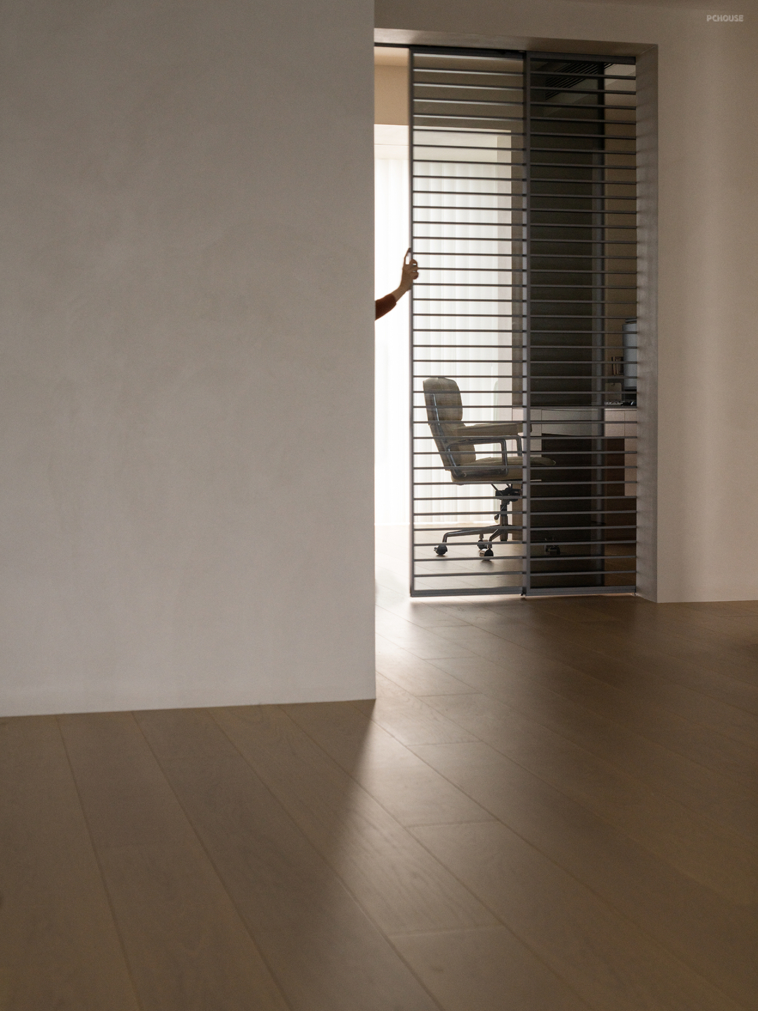 衣帽间采用幽灵门,去掉了繁重的滑轨,将门和空间融合,让衣帽间在主卧之中却又独立存在。
