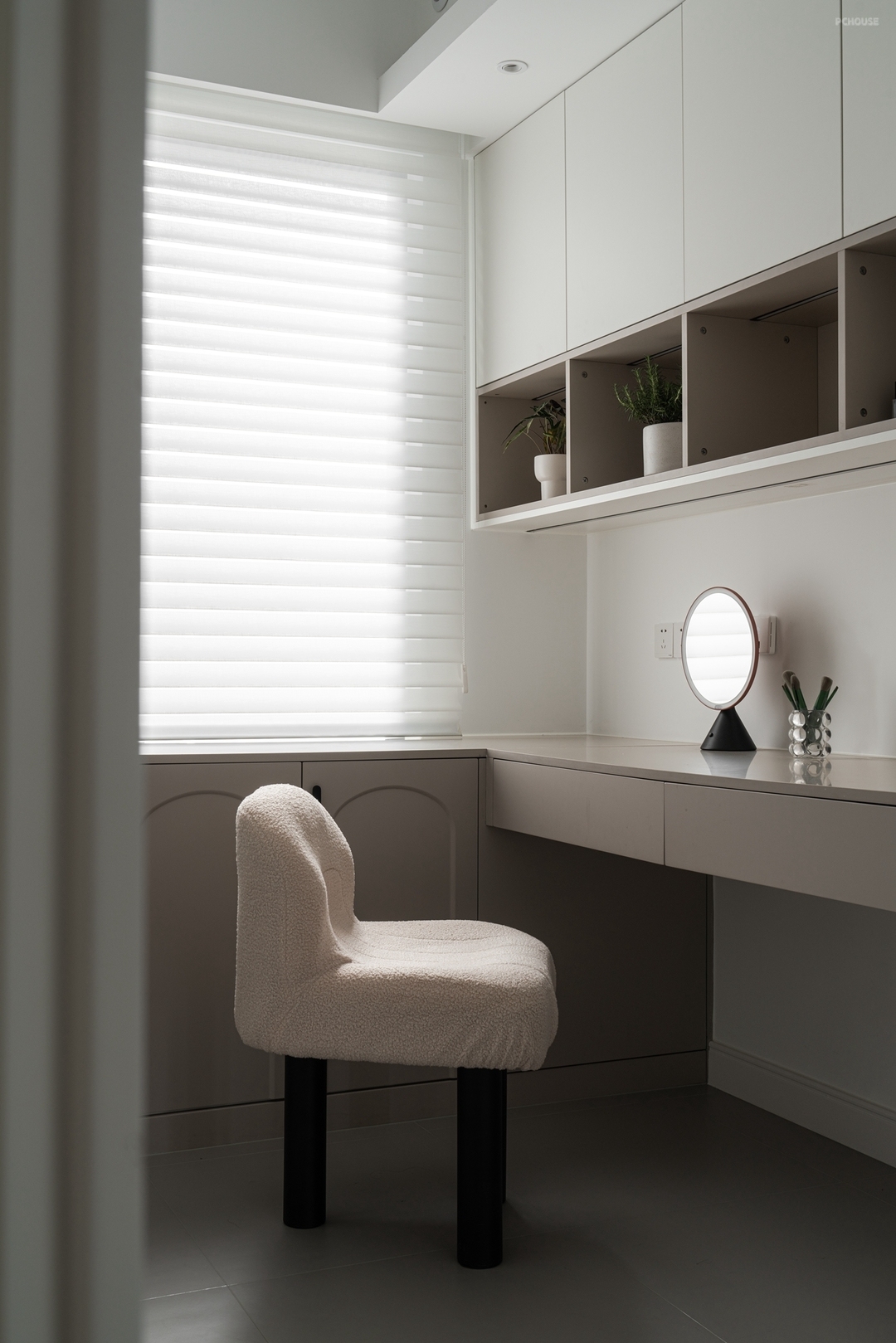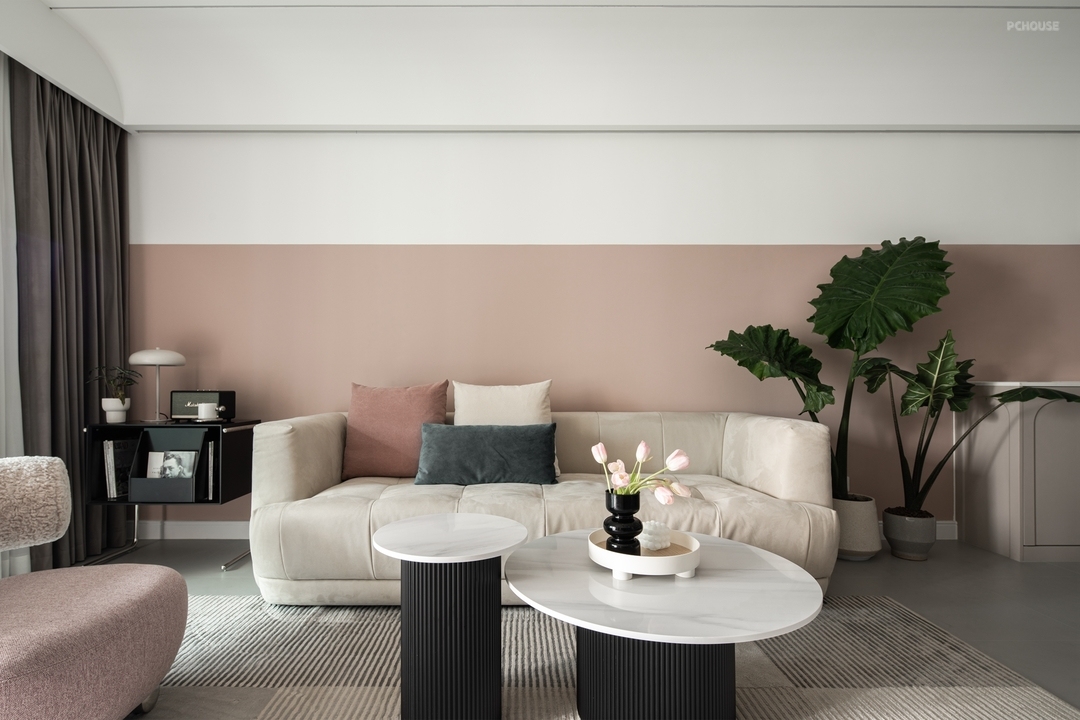 暖灰与灰粉的搭配赋予空间甜而不腻的视觉效果。