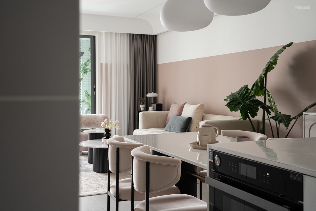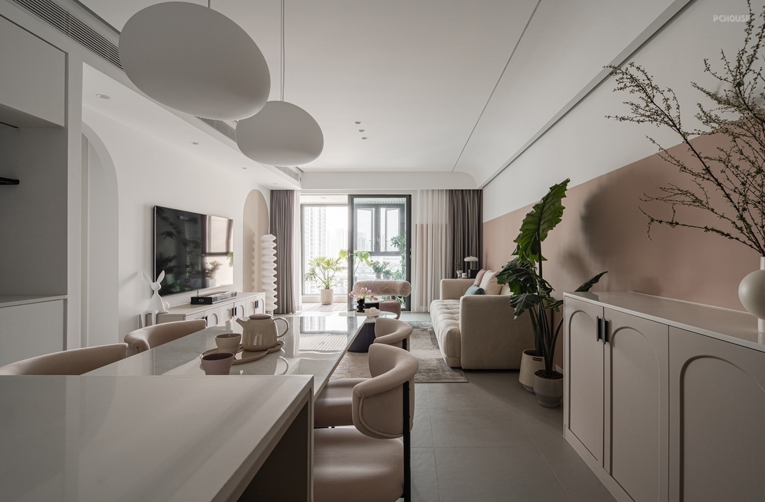 顶面、立面、家具都克制地运用了弧形元素,让家更加柔和优雅。
