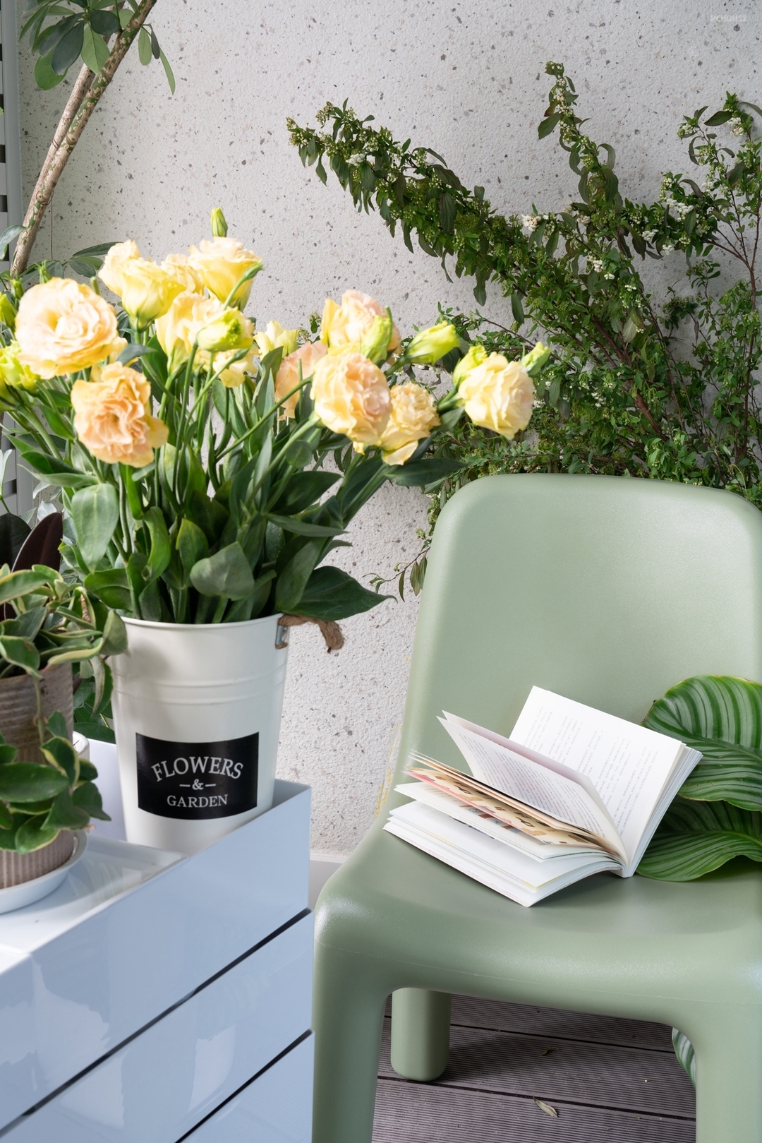 原始户型将近6米长的阳台利用率不高,将一部分封进次卧,让父母房得到更宽松的尺度,另一部分则保留,地面铺装生态木,种上喜欢的绿植,打造自然角落,给家一种持久的滋养。