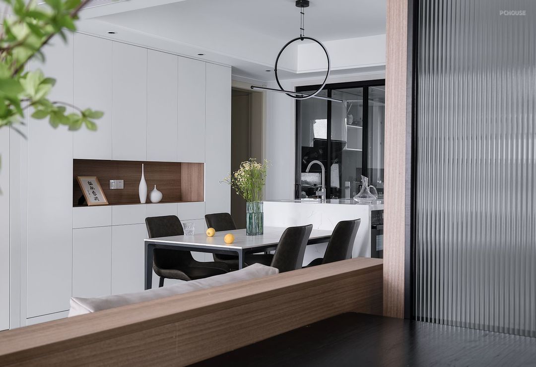 设计师以空间为容器,开放接纳两人的理想生活场景,让理性和感性共生共存给予两人自由和谐的居家体验 。