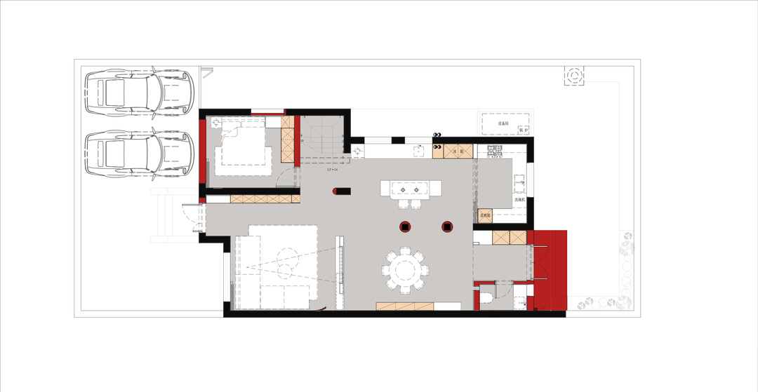 一层原有的格局较为零散,视觉上不够大气。我们将空间重新打开整合: 1.将卧室重新规划,留出楼梯位置,将原楼梯整合进餐厅,扩大使用面积; 2.合理缩减洗手间面积,满足上厕所及洗手功能即可; 3.客厅空间重新规划,利用挑空结构定制挑高5m电视背景墙,保留空间特质; 4.打开厨房,居中定制岛台,靠窗定制吧台,打造独立西厨区,中西厨分离更便捷实用; 从客厅到中岛再及餐厅,整个公区敞阔连通,视野通透动线便捷。