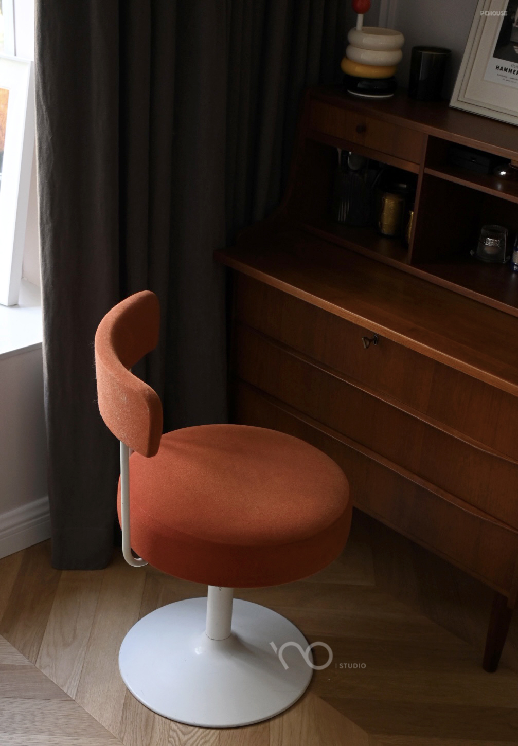 中古秘书柜,同时也承载着化妆台和美妆收纳功能,是一个小体量的功能复合体。屋主相信这些历经半个多世纪审美洗礼的家具,可以记录她当下的生活并伴随她到未来。