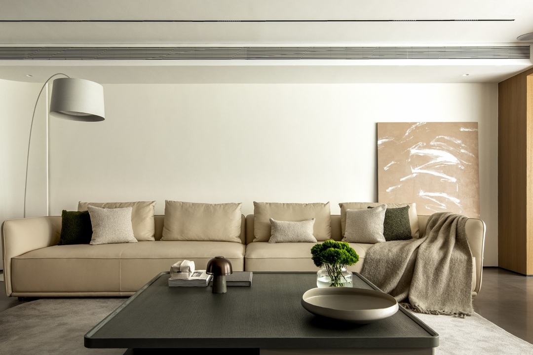 结构呈现着棱角分明的线条,将空间切割出极富层次的锐利感,然后在软装的选择中,通过柔和的曲线与温润细腻的材质,恰到好处地达成平衡,空间蕴着内敛的力量,呈现着现世安稳的畅意美感。