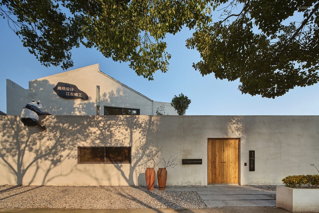 这是尚格设计位于永嘉瓯江北岸处的工作室,道路两旁的空间本该是嘈杂喧闹的,而这栋建筑身处其中却显得格外静谧,仿佛都市喧闹,皆与我无关。