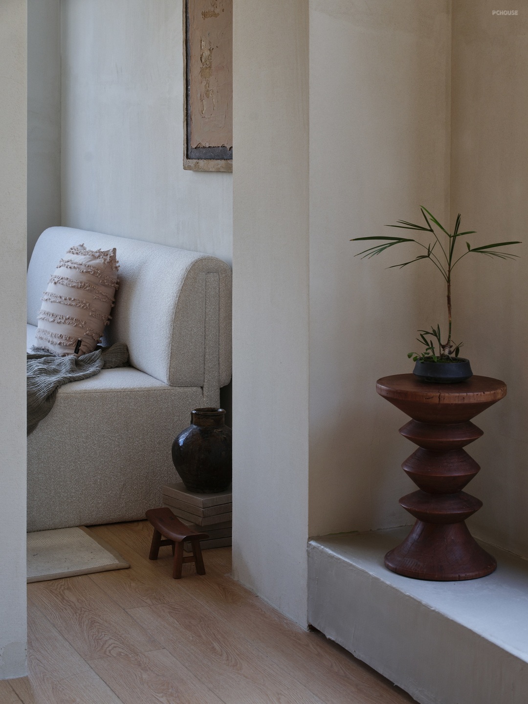 如果说一层是对外的透气与舒展,二楼则是偏向私密的温柔与慵懒。空间气质在楼梯的行走间慢慢转换。